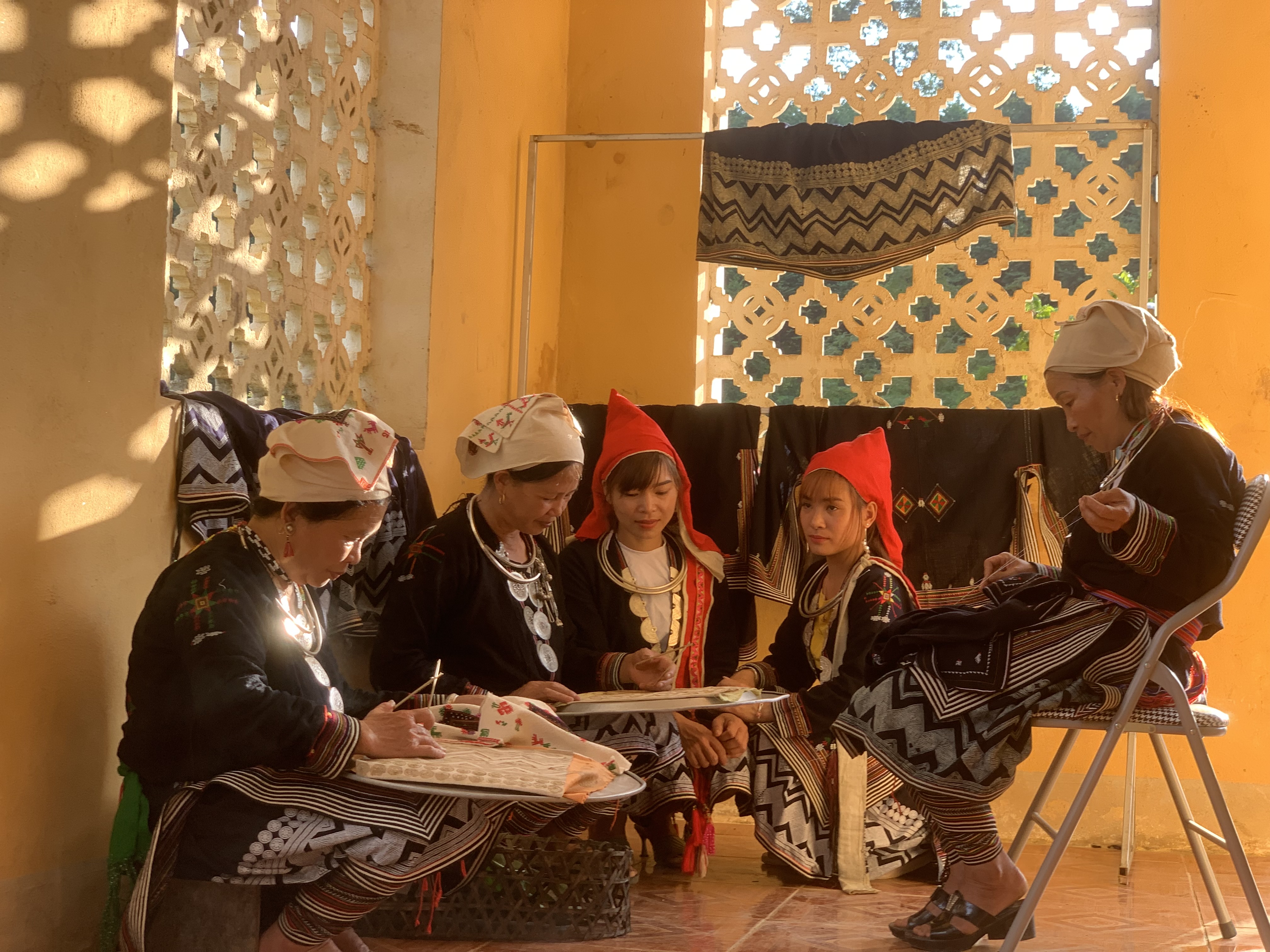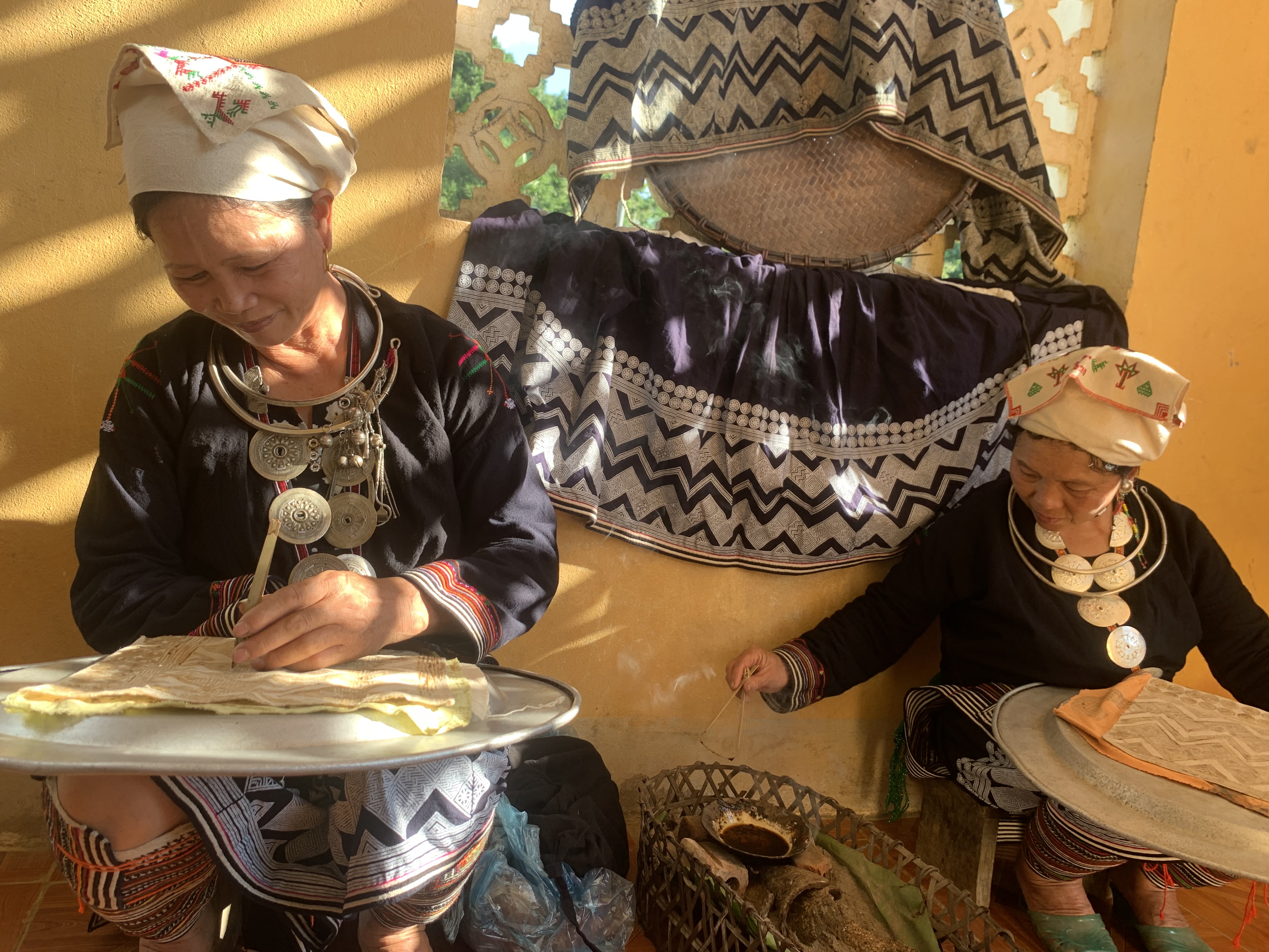 In hoa văn bằng sáp ong trên vải đòi hỏi sự tỉ mỉ, khéo léo của phụ nữ