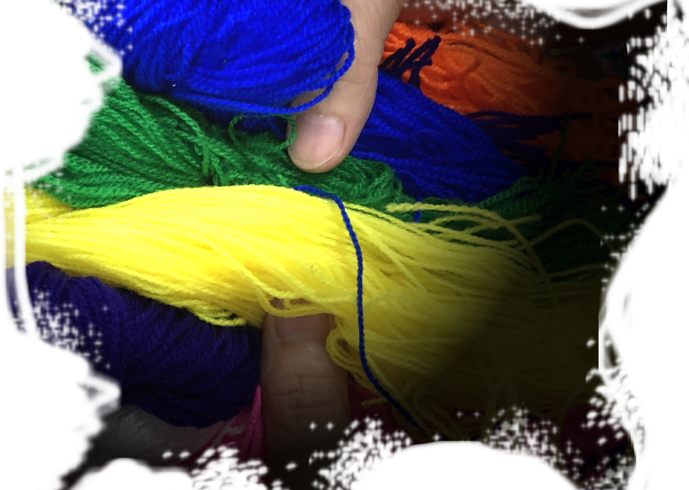 Những cuộn len màu sắc là chất liệu chính để chị Mai tạo nên các sản phẩm của mình.