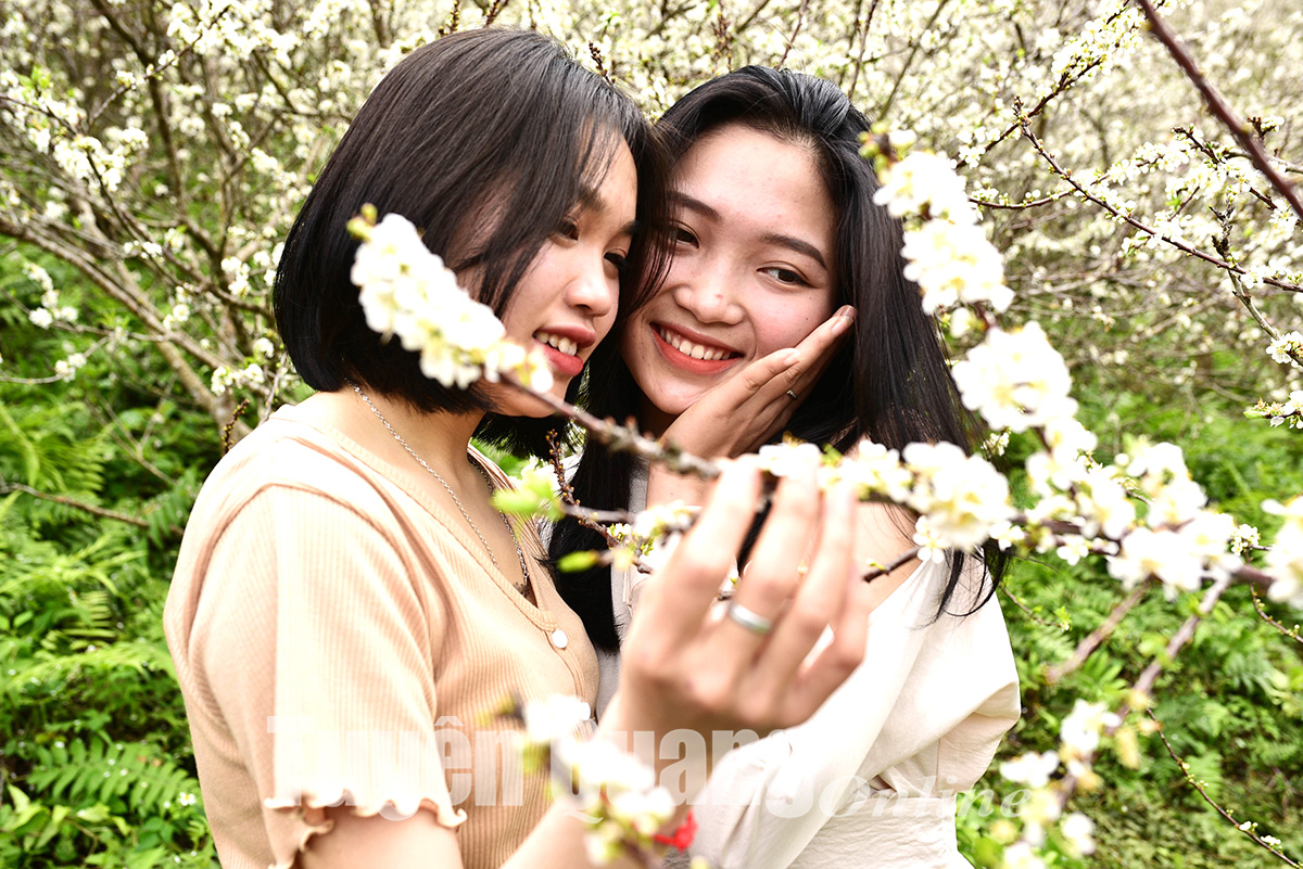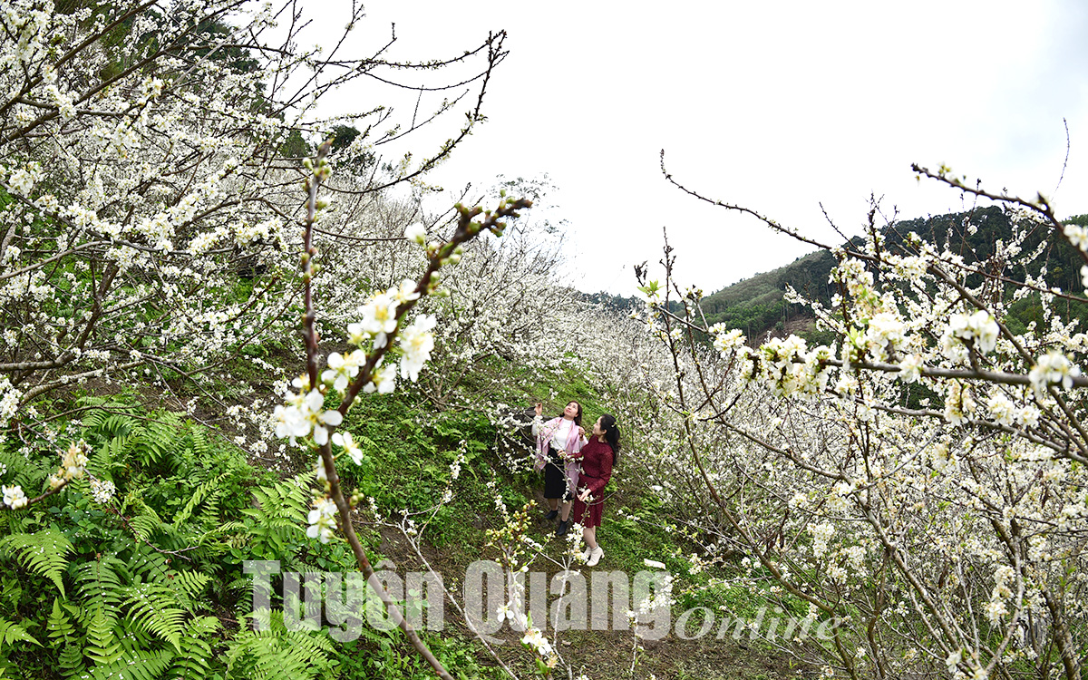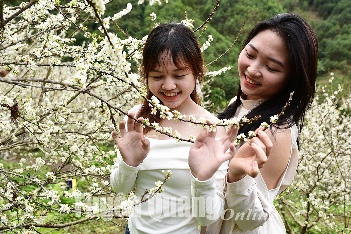 Sắc trắng tinh khôi của hoa mận khiến du khách nao lòng.