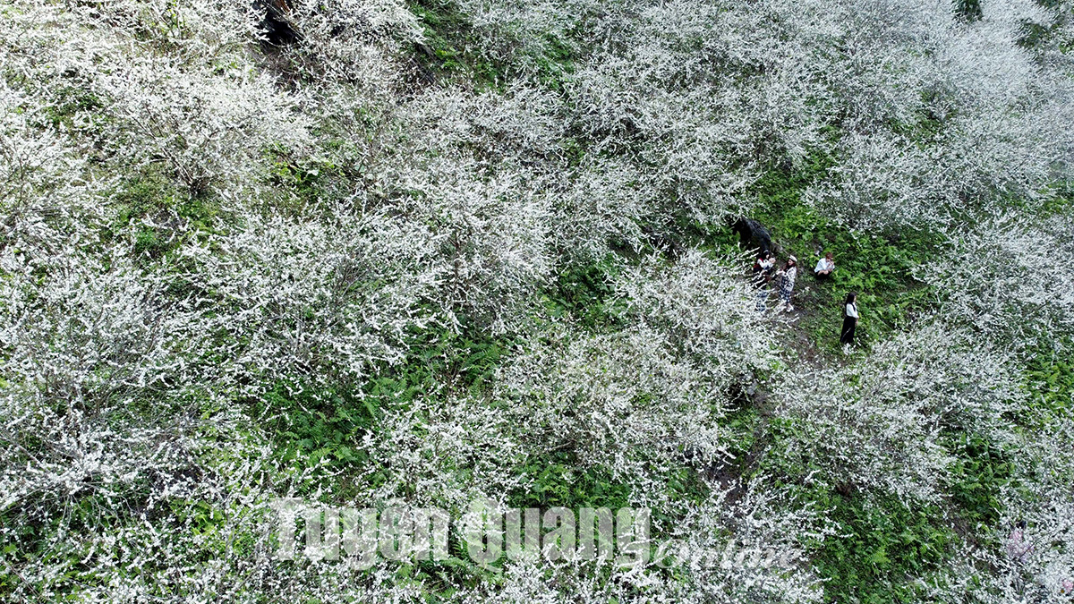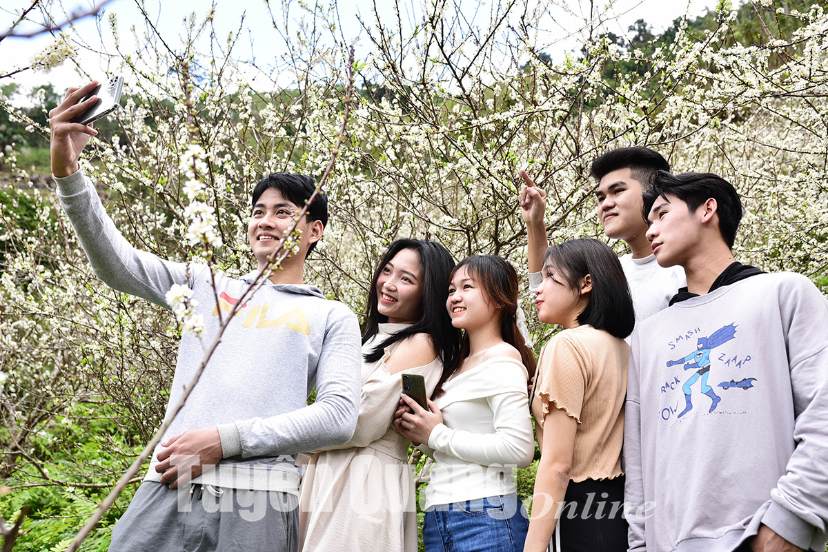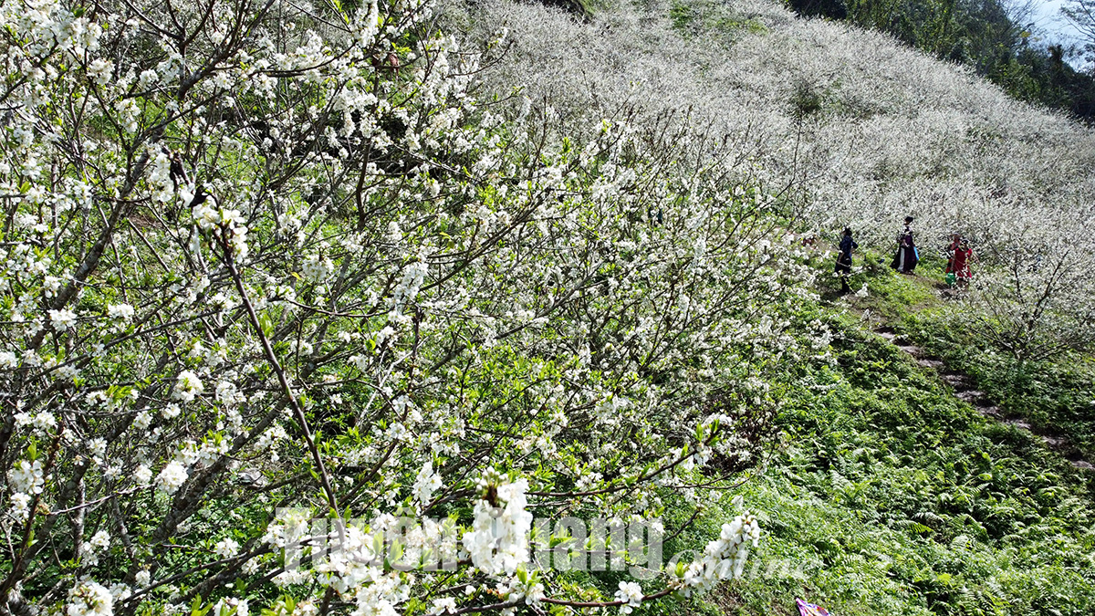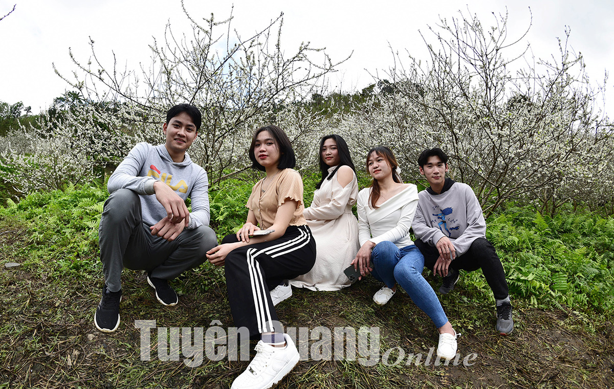 Sắc trắng tinh khôi của hoa mận khiến du khách nao lòng.