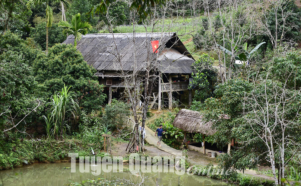 Thôn Nà Héc đa phần đồng bào Tày với mái nhà sàn truyền thống.