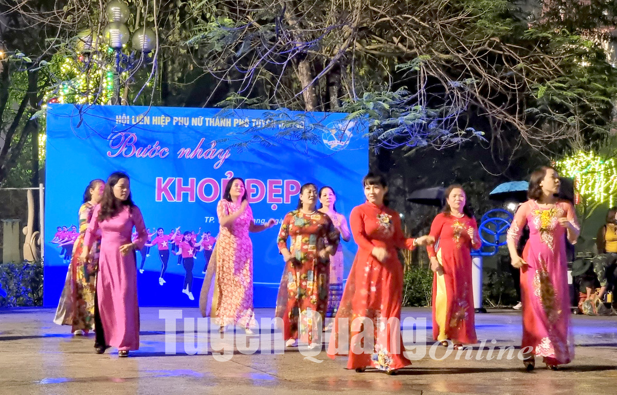 Tại 2 sân khấu vườn hoa trên tuyến phố đi bộ, Hội LHPN thành phố đã tổ chức Chương trình “Bước nhảy khỏe đẹp”. Chương trình thu hút sự tham gia các nhóm nhảy đến từ Hội LHPN các xã, phường: Phan Thiết, Ỷ La, Tân Quang, Minh Xuân, Mỹ Lâm, Công an thành phố. Các nhóm nhảy đã biểu diễn hơn 10 tiết mục nhảy dân vũ sôi nổi, hấp dẫn.