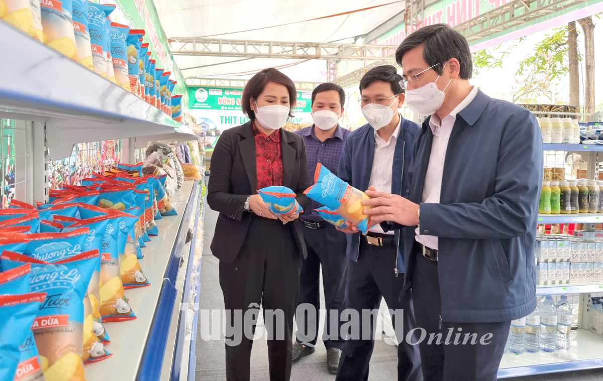 trưng bày các sản phẩm OCOP của thành phố Tuyên Quang.