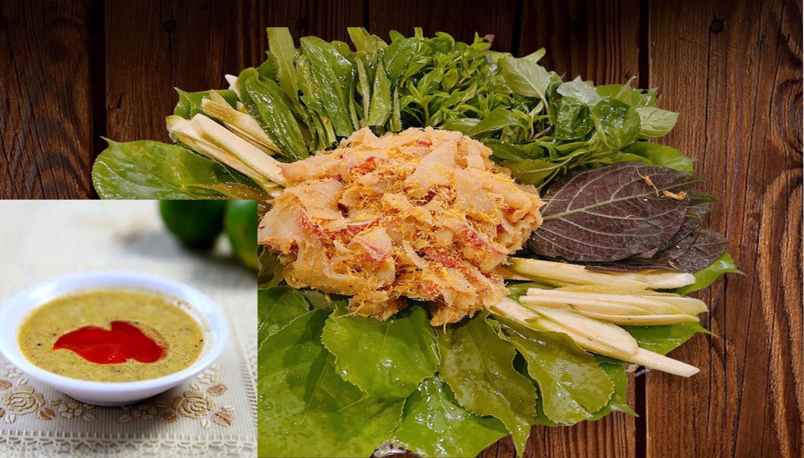 Món gỏi cá Bỗng được ghém cùng các loại rau rừng dùng với nước chấm chẻo mang lại hương thơm đặc trưng