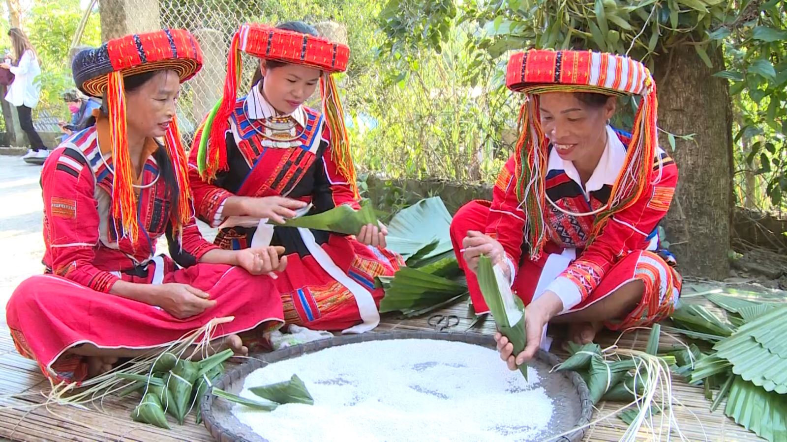 Phụ nữ người Pà Thẻn ở thôn Thượng Minh, xã Hồng Quang (Lâm Bình) gói bánh sừng trâu.