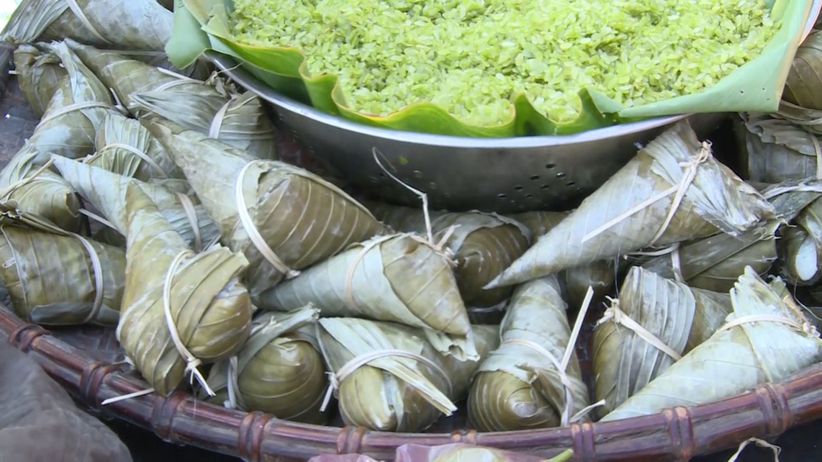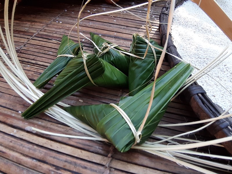 Bánh sừng trâu vừa gói xong.