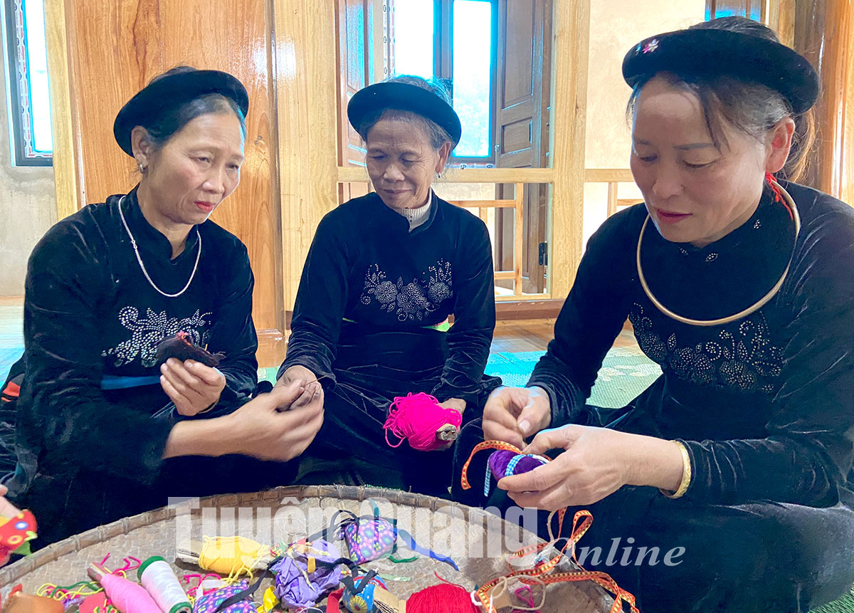 Đồ trang sức, phụ nữ Cao Lan đeo từ 1 đến 3 vòng cổ, tay đeo 1-2 vòng, có chùm dây xà tích. Tất cả đều bằng bạc.