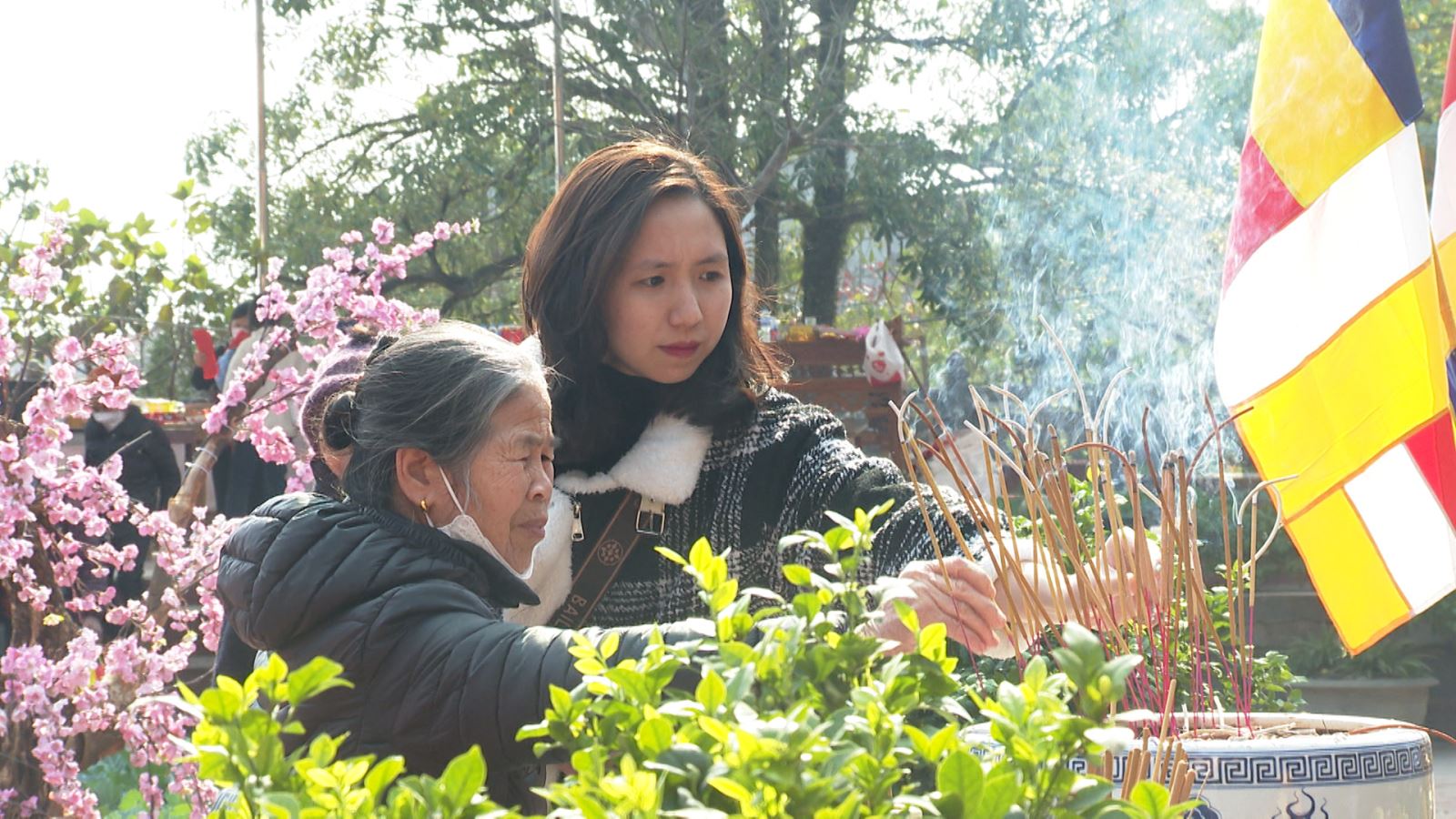 Người dân đi lễ đầu năm ở Chùa An Vinh, thành phố Tuyên Quang