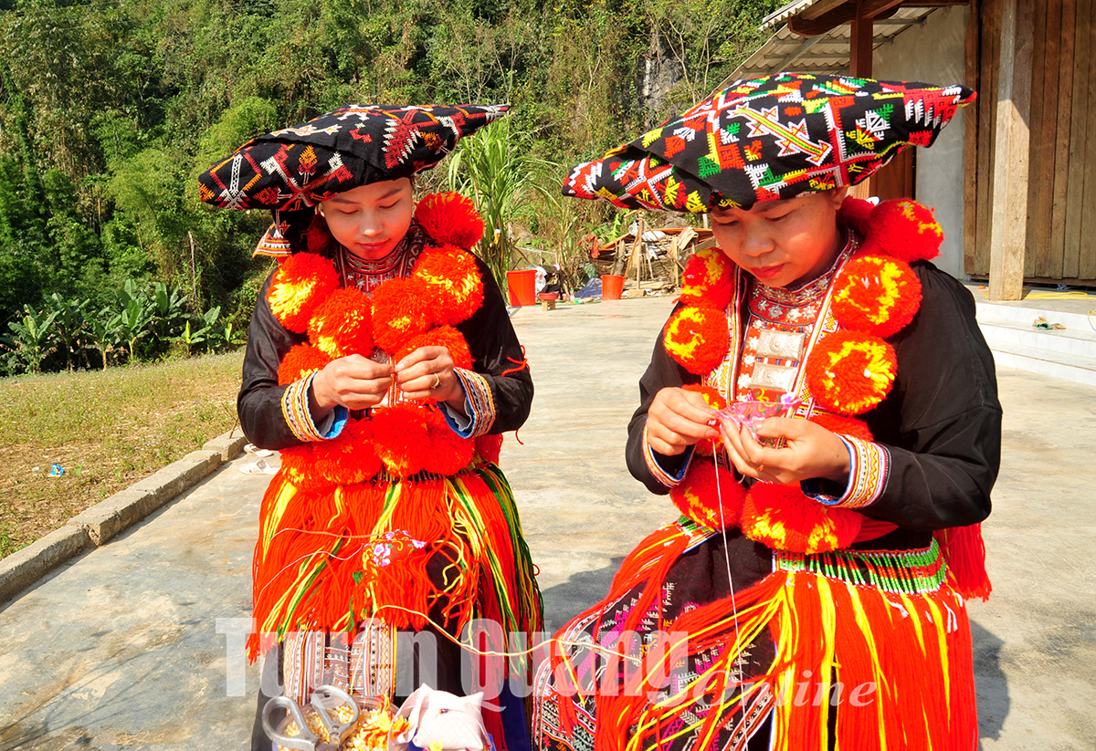 Ở đây, những người phụ nữ Tày, Dao còn thành thạo trong việc thêu thùa trang phục truyền thống. Vào các ngày lễ của hai dân tộc, các chị em đều diện những bộ trang phục truyền thống đẹp nhất. Chị Đặng Thị Cói, 32 tuổi cho biết: “Phụ nữ Dao không biết thêu thổ cẩm, làm trang phục truyền thống như con chim không biết bay về tổ, như con suối không có nguồn”. Bên cạnh việc gìn giữ trang phục dân tộc, người Dao nơi đây còn giữ gìn những điệu hát Páo dung. Vào các ngày lễ, Tết, thôn thành lập các đội thi hát Páo dung.