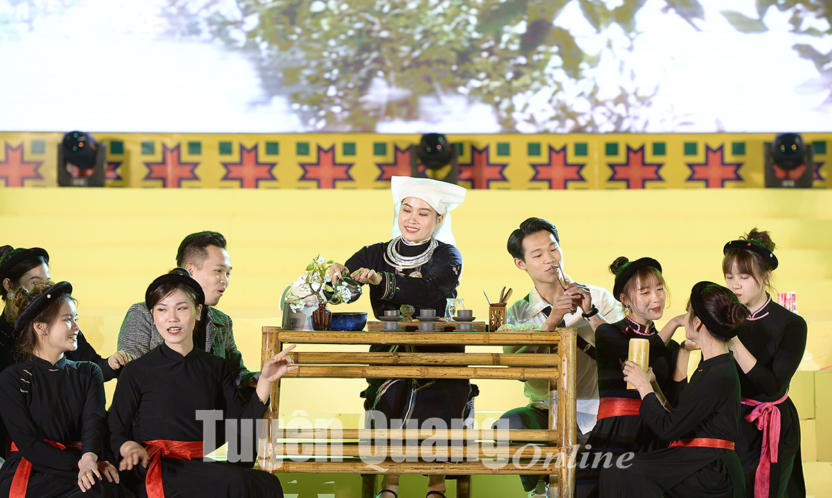 Biểu diễn thưởng chè Shan tuyết Na Hang. Ảnh: Quang Hòa