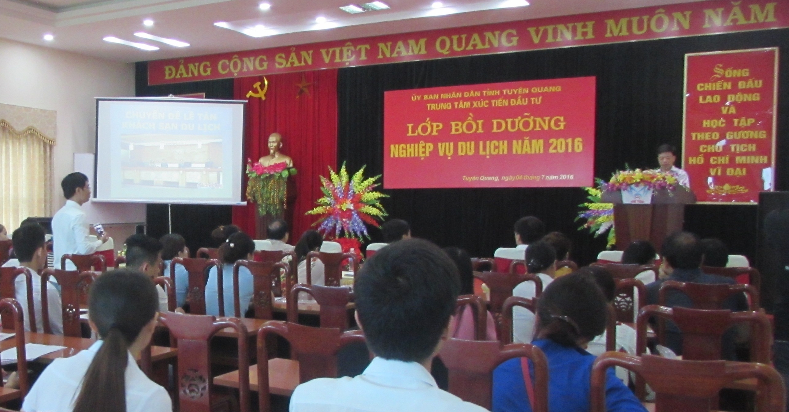 Phát biểu tại lễ khai mạc lớp tập huấn, ông Trương Xuân Quý, Giám đốc Trung tâm xúc tiến đầu tư tỉnh Tuyên Quang đã đánh giá cao vai trò của nhân viên lễ tân và nhân viên phục vụ trong nhà hàng, đồng thời, cũng nhấn mạnh đây là khâu quan trọng trong việc nâng cao chất lượng phục vụ khách du lịch, qua đó cũng nhắc nhở các học viên tham gia khóa học cần tập trung, lĩnh hội kiến thức từ khóa học để từ đó vận dụng trong những hành vi, thái độ ứng xử có văn hóa khi giao tiếp, phục vụ khách du lịch, góp phần nâng cao chất lượng và hình ảnh du lịch tỉnh nhà đối với du khách, trước mắt là phục vụ tốt cho Lễ hội thành Tuyên 2016.