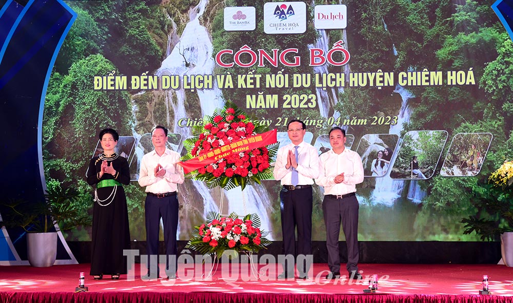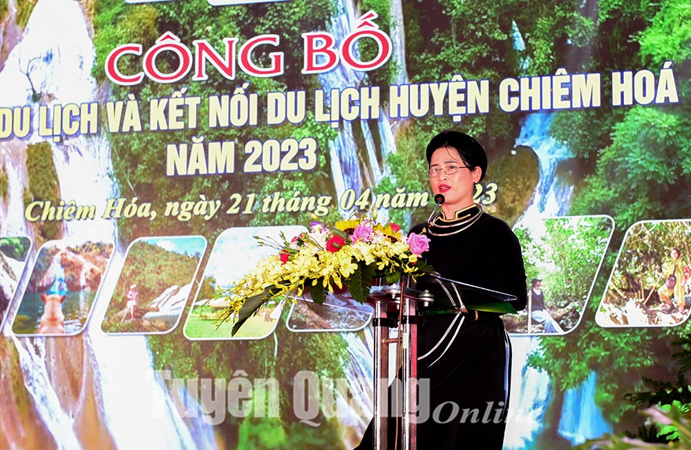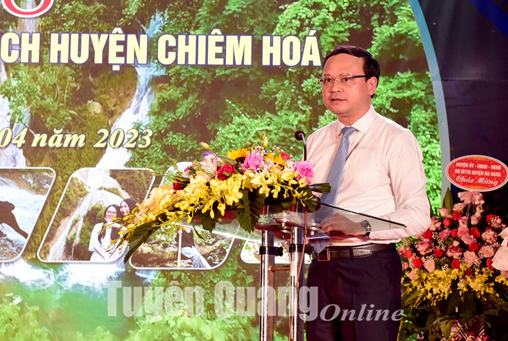 Phát biểu tại buổi lễ, đồng chí Phó Chủ tịch UBND tỉnh Nguyễn Mạnh Tuấn thay mặt các đồng chí lãnh đạo tỉnh hoan nghênh và đánh giá cao sáng kiến của huyện Chiêm Hóa tổ chức sự kiện “Chương trình công bố điểm đến du lịch và kết nối du lịch huyện Chiêm Hoá năm 2023”. Sự kiện nhằm quảng bá và xây dựng một điểm đến du lịch hấp dẫn, đặc sắc, một thương hiệu du lịch tiêu biểu dựa trên nền tảng truyền thống cách mạng, bản sắc văn hoá riêng có của đất và người Chiêm Hóa, qua đó lan tỏa, tạo cơ hội để kết nối du lịch Chiêm Hóa với các địa phương trong và ngoài tỉnh.