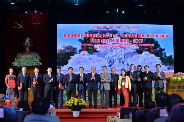 Tại hội nghị xúc tiến đầu tư, thương mại và du lịch tỉnh Tuyên Quang năm 2017, trước sự chứng kiến của Thủ tướng Nguyễn Xuân Phúc và các Bộ, ngành Trung ương, lãnh đạo tỉnh Tuyên Quang đã trao chủ trương đầu tư cho 6 nhà đầu tư, đầu tư vào các dự án du lịch nghỉ dưỡng, chăn nuôi, chế biến gỗ… với tổng vốn 3.700 tỉ đồng. Đại diện tỉnh Tuyên Quang và các nhà đầu tư đã ký cam kết thỏa thuận đầu tư 6 dự án với tổng mức vốn trên 18.600 tỉ đồng trong lĩnh vực sản xuất giấy, chế biến gỗ, thủy điện, thể thao…