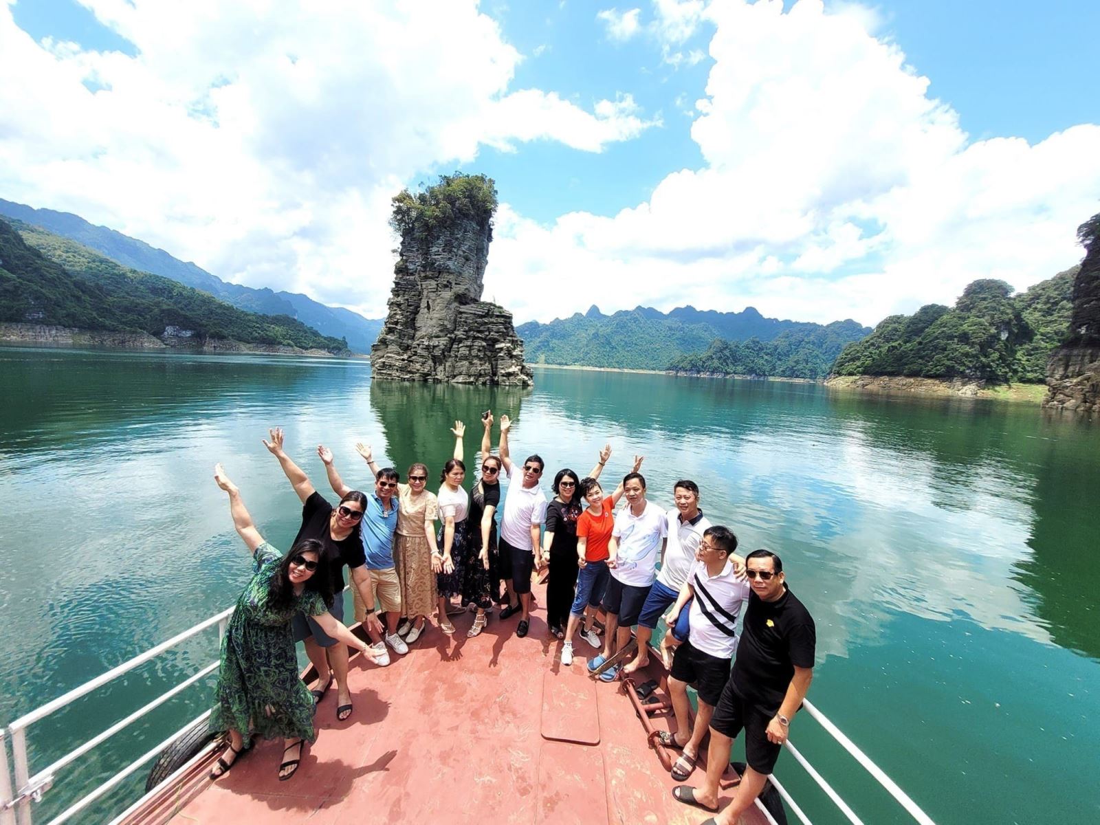 Trải nghiệm đầu tiên được nhiều du khách lựa chọn khi đến Na Hang là đi thuyền xuôi theo lòng hồ, từ từ lướt trên mặt nước mênh mông, trong xanh và chiêm ngưỡng cảnh sắc núi non trùng điệp dọc hai bên bờ.