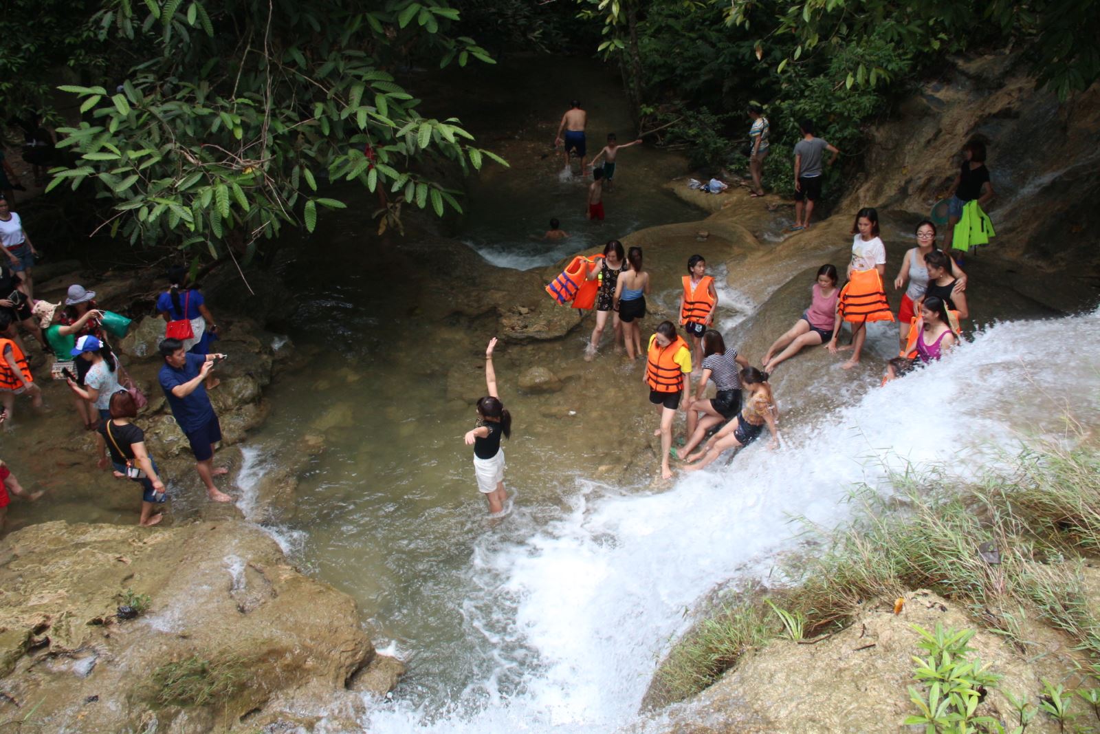 Tầng thứ 2 là tầng chính của thác, to hơn, hùng vĩ hơn tầng 1, trở thành phông nền “sống ảo” được nhiều du khách thích thú chụp hình khi tới đây.