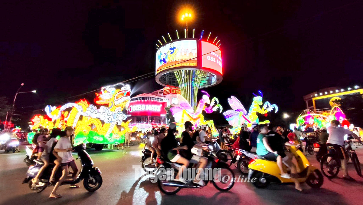 Biển người đổ về thành phố Tuyên Quang xem rước mô hình Trung thu khổng lồ.