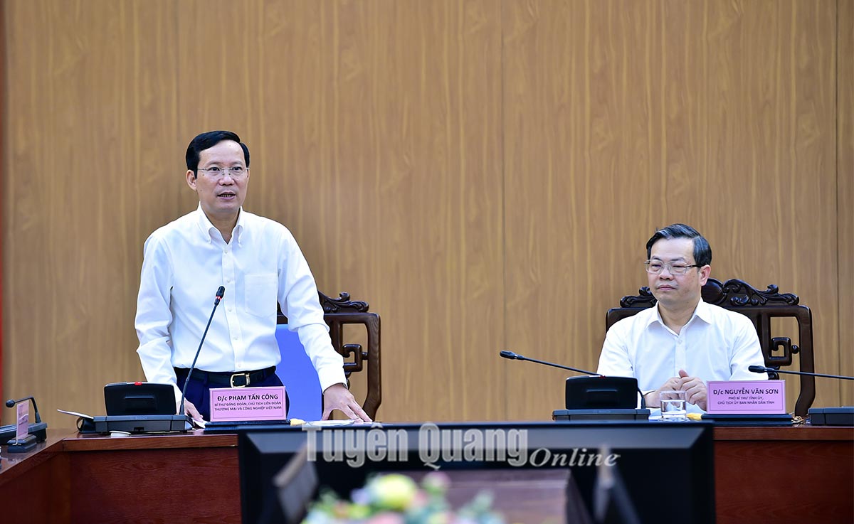 Phát biểu tại buổi làm việc, đồng chí Phạm Tấn Công, Chủ tịch VCCI bày tỏ sự vui mừng nhận thấy Tuyên Quang đang có sự chuyển mình mạnh mẽ, điều đó khẳng định, những đường lối, chính sách của tỉnh đúng hướng phù hợp với điều kiện của địa phương.