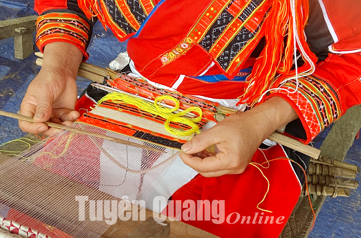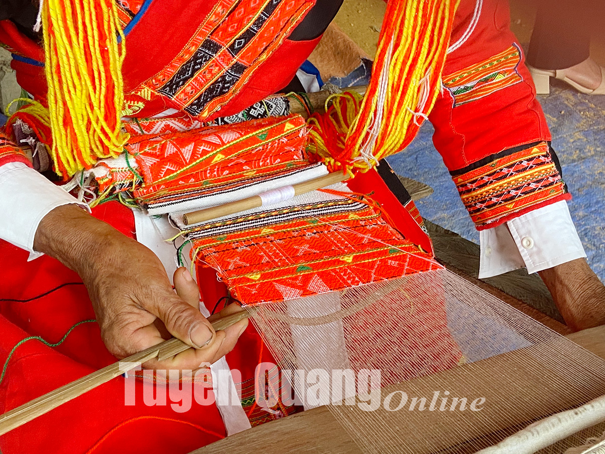 Phụ nữ Pà Thẻn, xã Hồng Quang (Lâm Bình) khéo léo tạo hoa văn dệt thổ cẩm.