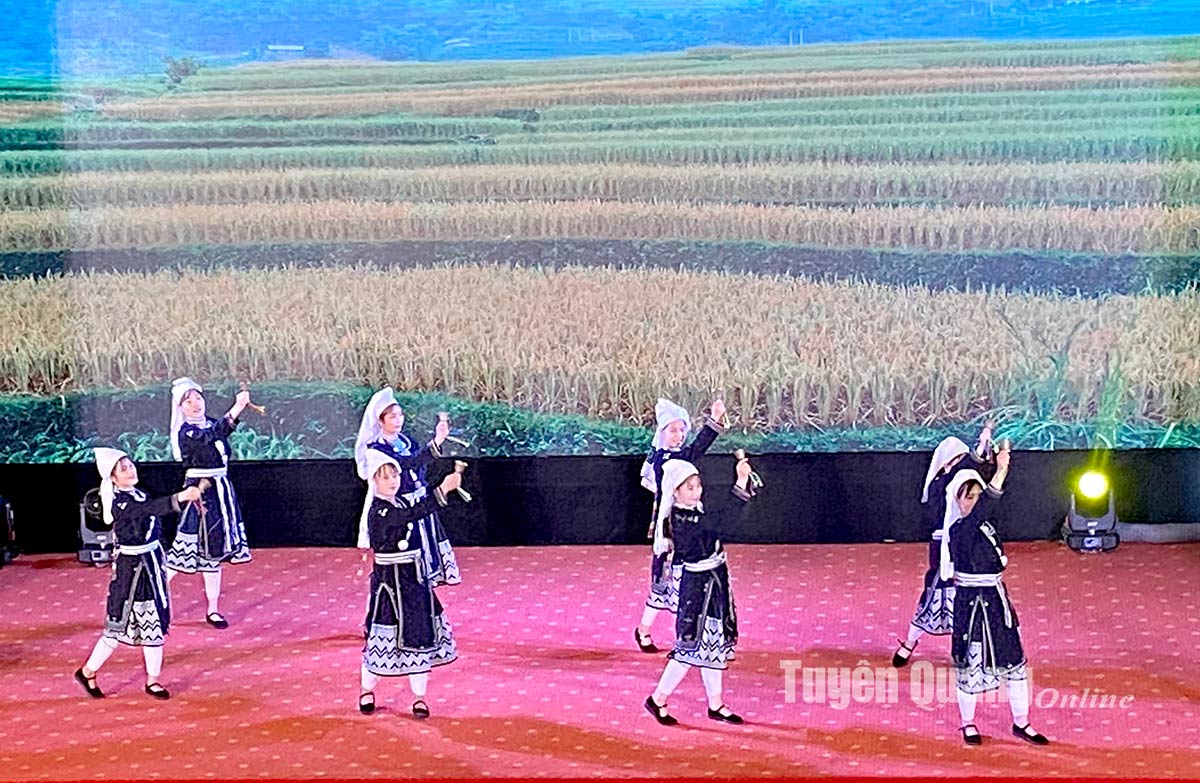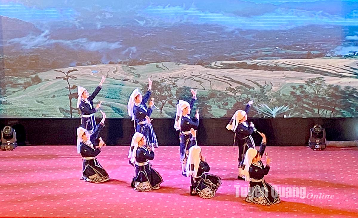 Một tiết mục múa của Đội văn nghệ thôn Khâu Tràng, xã Hồng Thái tại Liên hoan các làng văn hoá cộng đồng 6 tỉnh Việt Bắc.