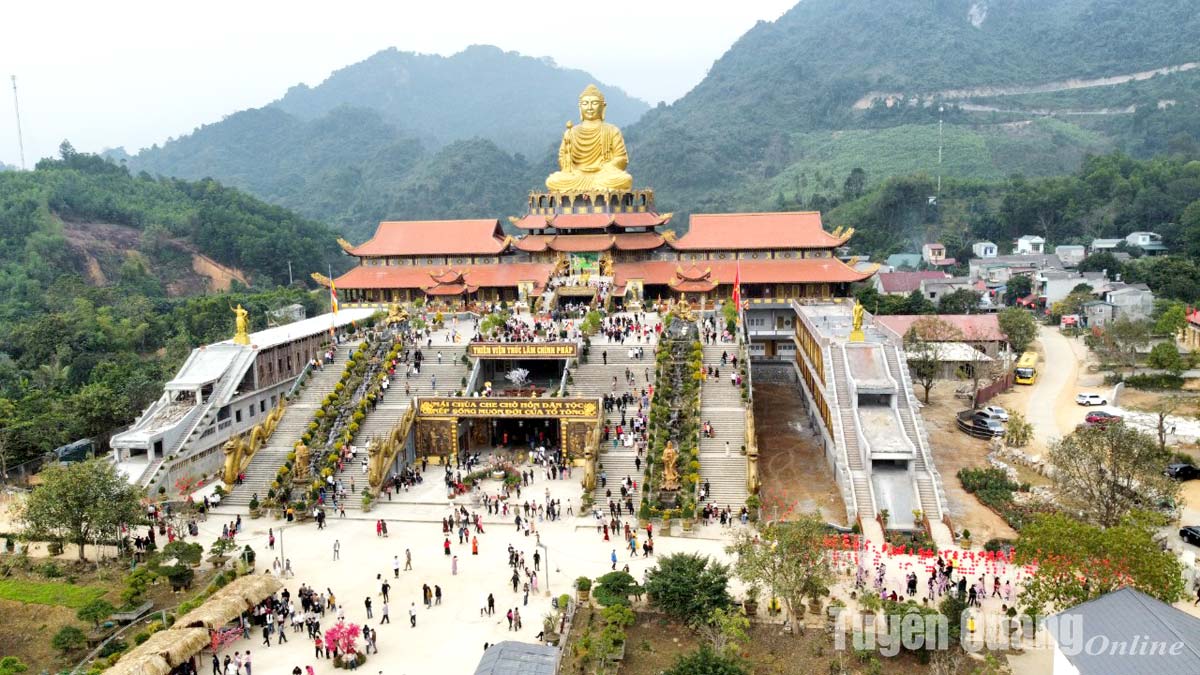 Du khách đi lễ, vãn cảnh Thiền viện Trúc lâm Chính pháp Tuyên Quang.