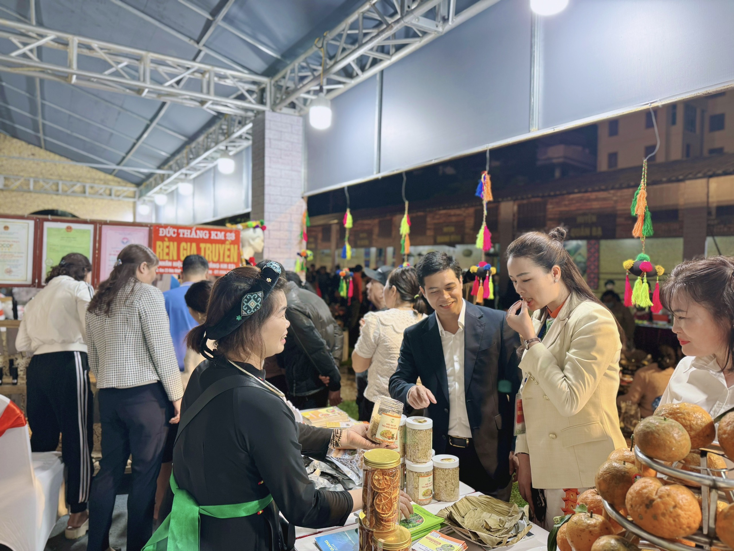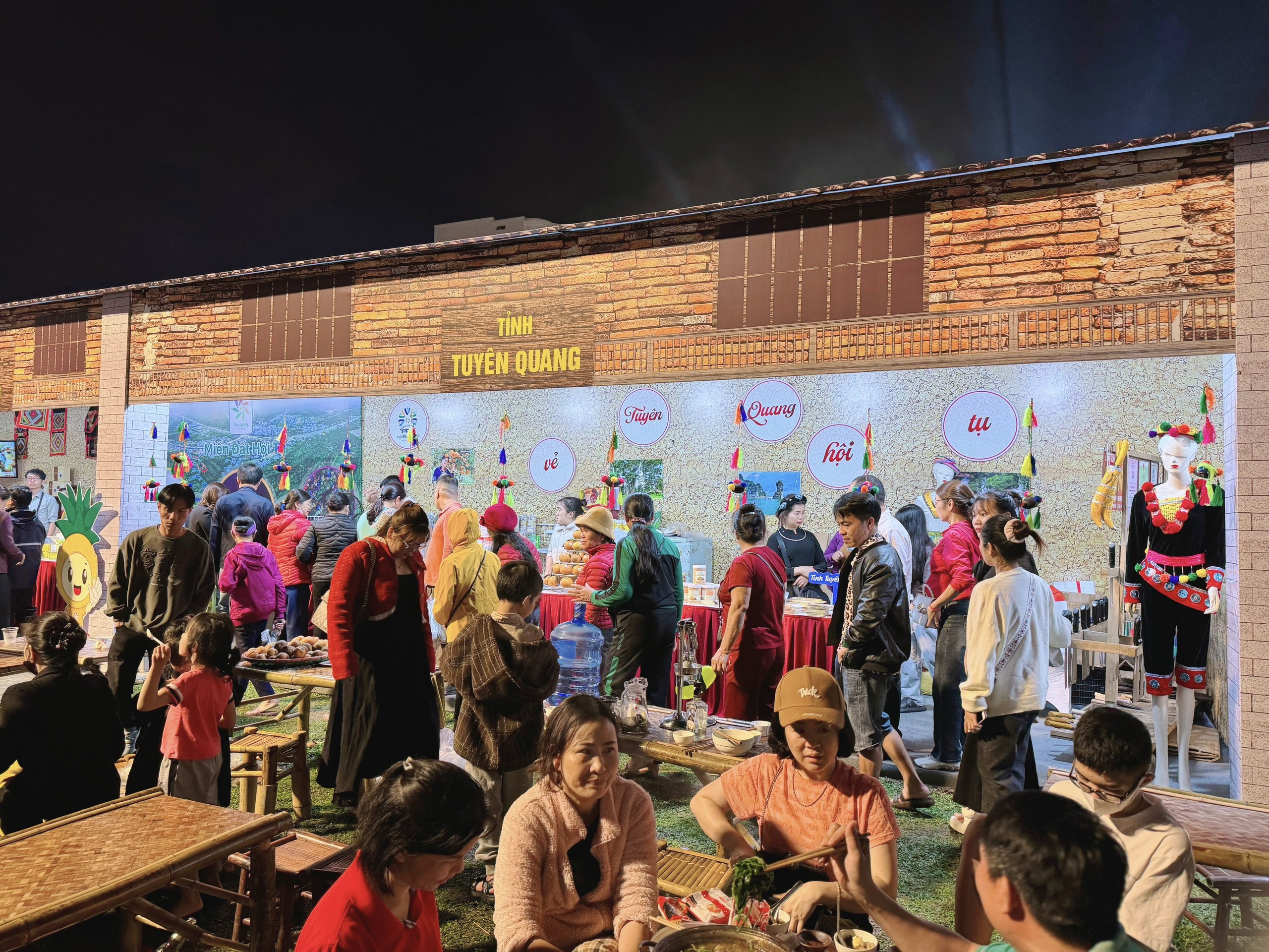 Các sản phẩm ẩm thực đặc trưng, sản phẩm OCOP cũng được quảng bá, giới thiệu tại gian hàng như: Bánh gai, bánh gấc, bánh chuối Chiêm Hóa, thịt trâu, lạp xườn, rượu Xứ Tuyên, nước khoáng Mỹ Lâm, miến dong, măng rừng, nấm hương, mộc nhĩ rừng, mật ong, phấn hoa mật ong, chè các loại, bưởi Soi Hà, cam Hàm Yên...