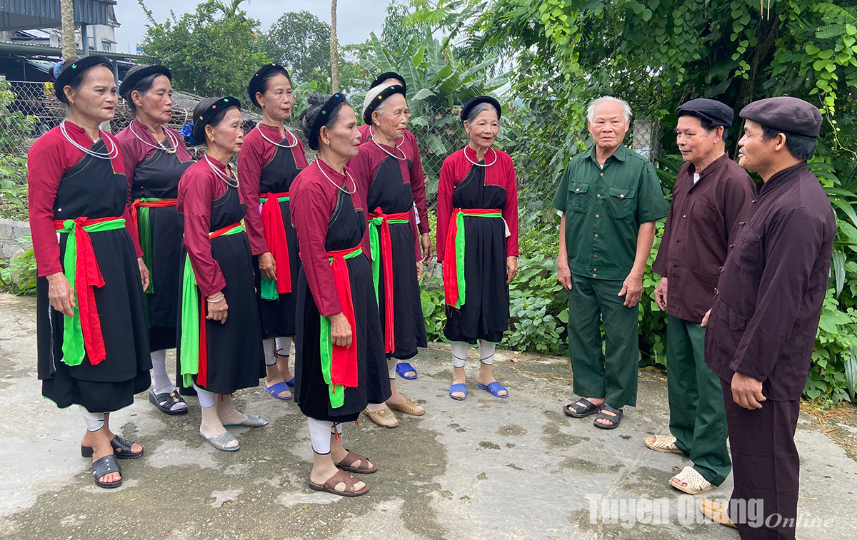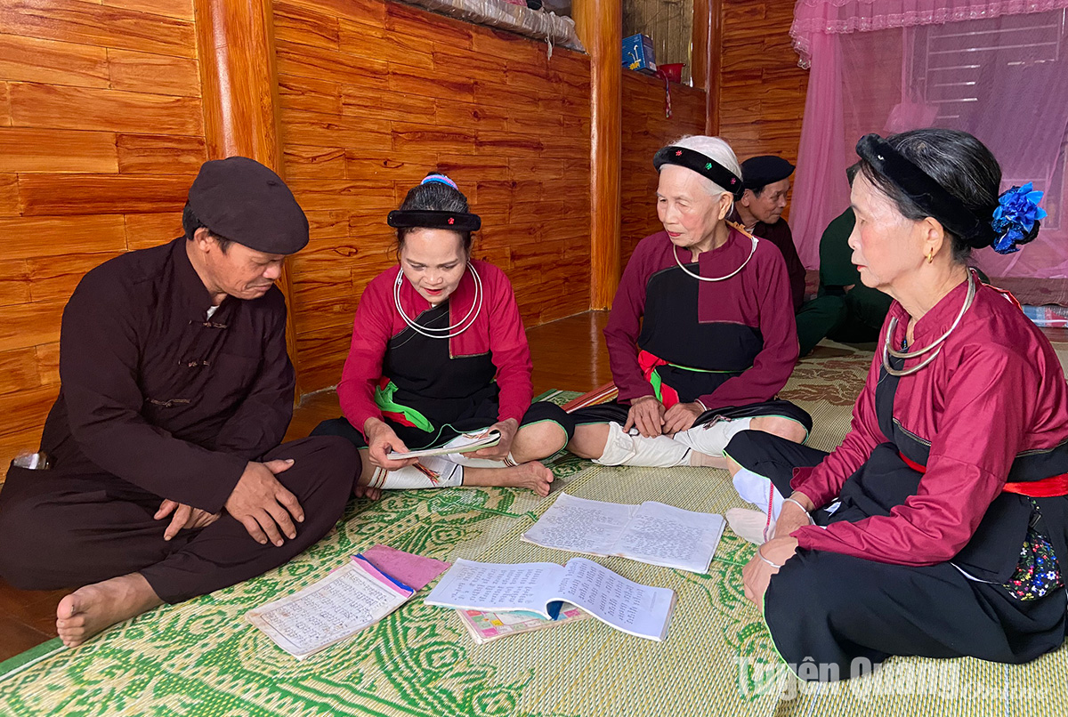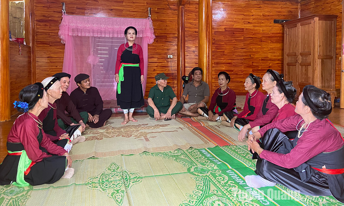 Các thành viên Đội văn nghệ thôn Gò Củi, xã Nhữ hán (Yên Sơn) tập hát Sình ca.