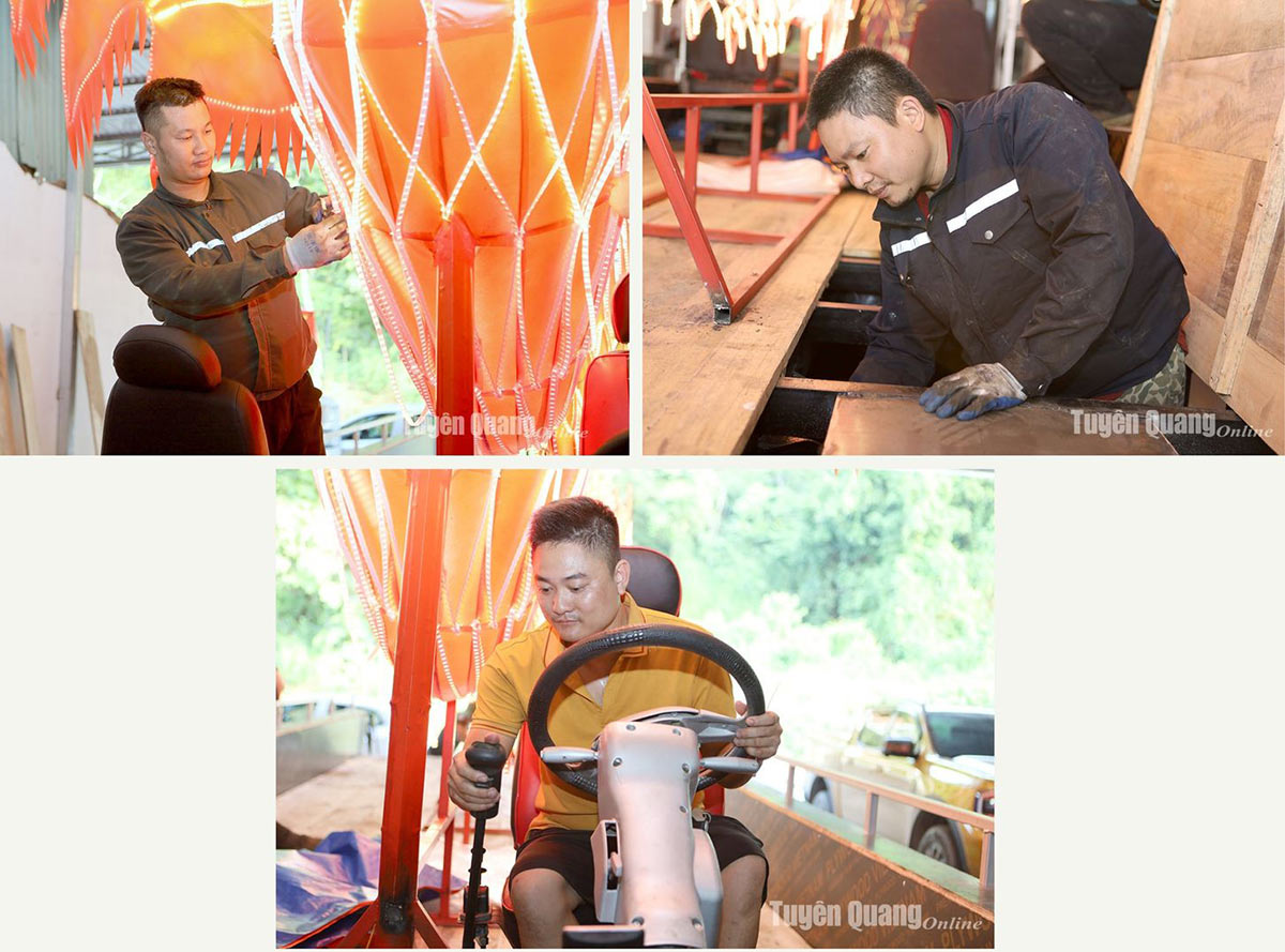 Những ngày đầu tháng 8, mô hình đang được trang trí thêm các dải đèn LED nhiều màu để tăng thêm sự sặc sỡ.