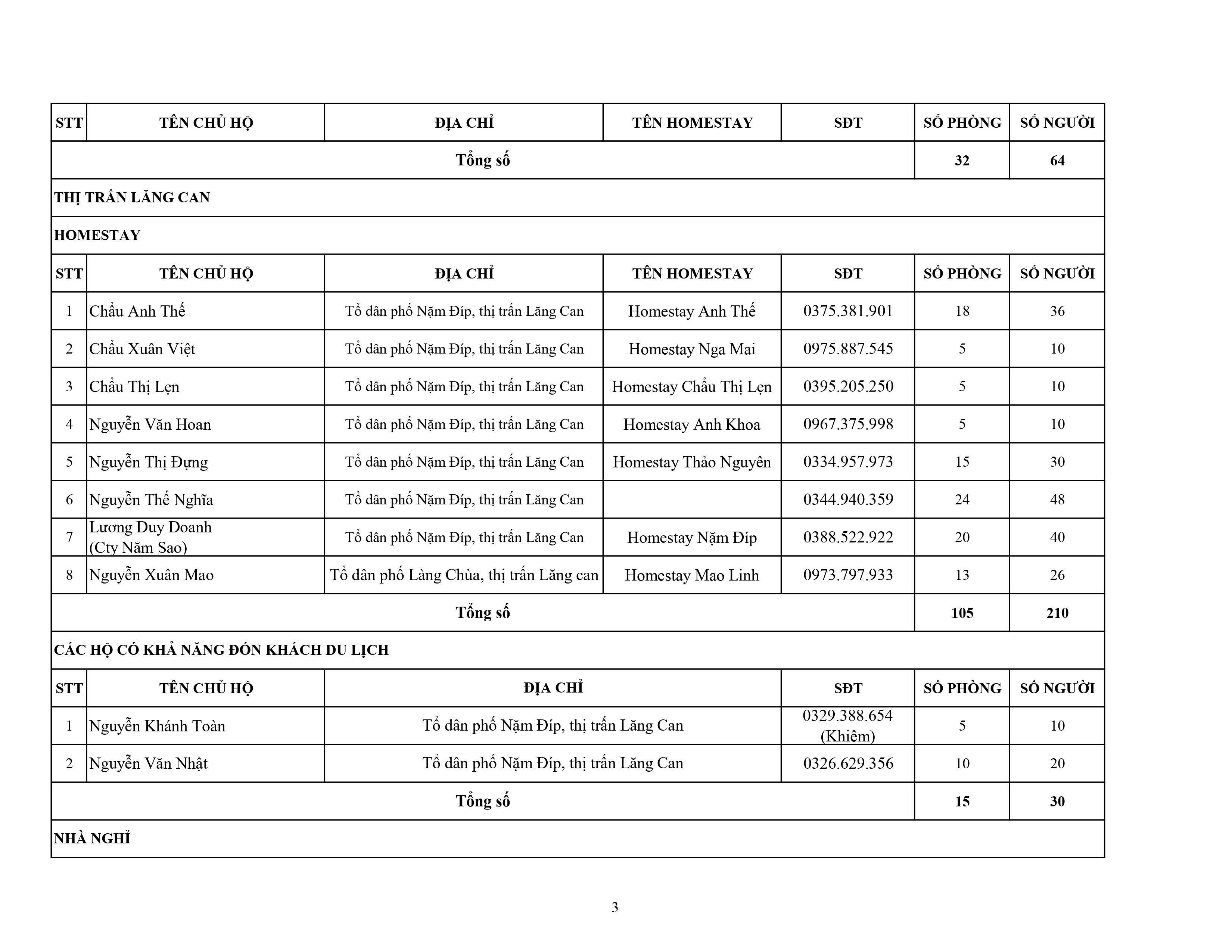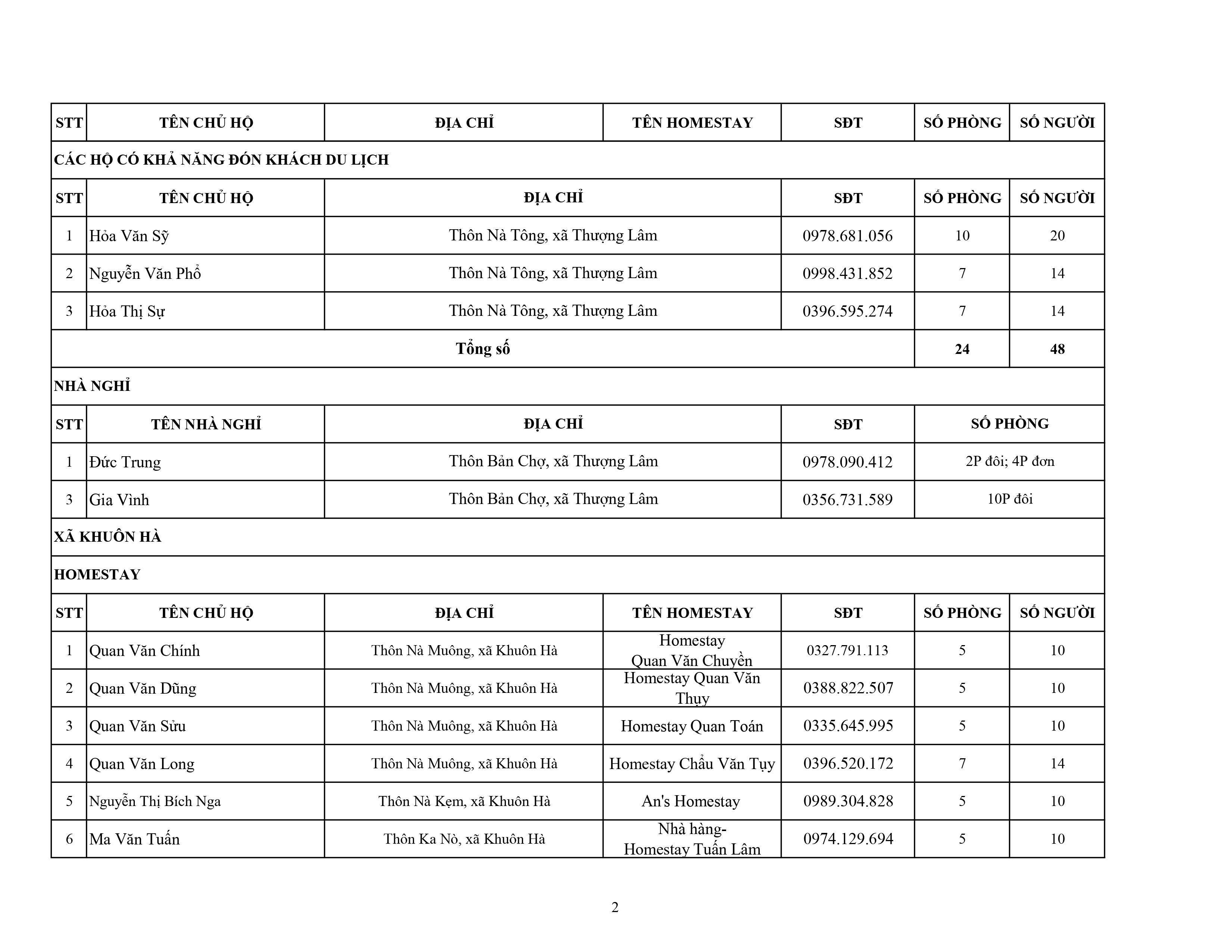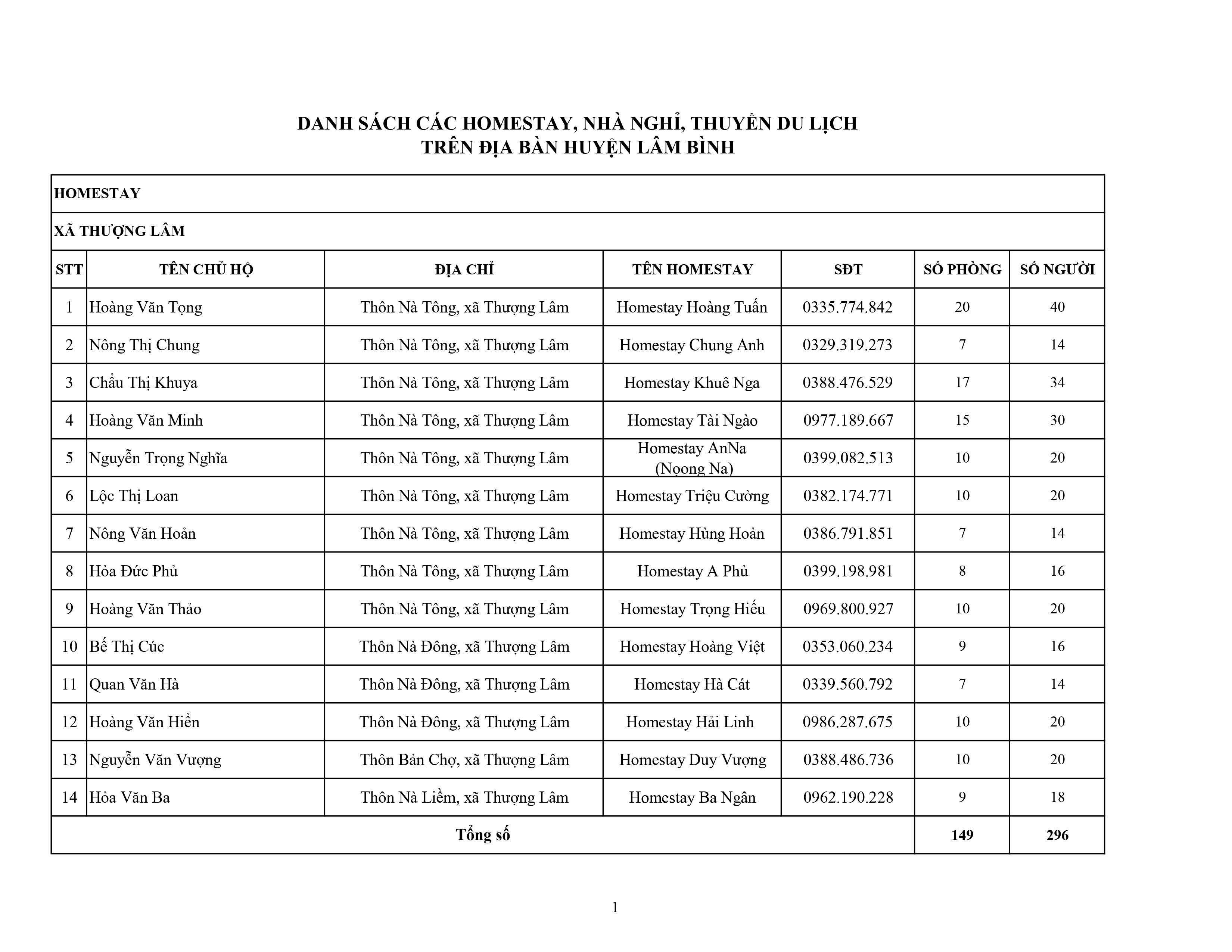 Danh sách Cơ sở lưu trú, nhà hàng, homestay tại huyện Lâm Bình năm 2024 Ngày đăng: Thứ 4, 14/8/2024 - 16:25 Lượt xem: 128 Danh sách Cơ sở lưu trú, nhà hàng, homestay tại huyện Lâm Bình năm 2024 Bài viết liên quan Danh sách Cơ sở lưu trú, nhà hàng, homestay tại huyện Na Hang năm 2024 Thứ 4, 14/8/2024 - 16:22 Danh sách Cơ sở lưu trú, nhà hàng, homestay tại huyện Chiêm Hóa năm 2024 Thứ 4, 14/8/2024 - 16:20 Danh sách Cơ sở lưu trú, nhà hàng, homestay tại huyện Hàm Yên năm 2024 Thứ 4, 14/8/2024 - 16:18