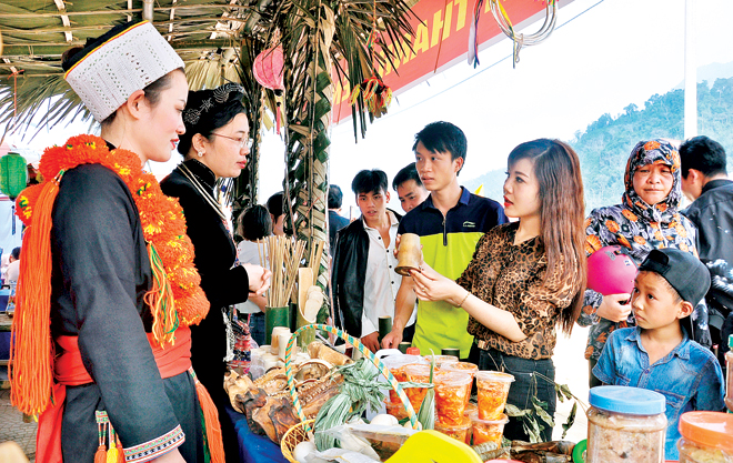 Nông sản đặc trưng của huyện Lâm Bình được bày bán tại Lễ hội Lồng tông huyện Lâm Bình 2018.