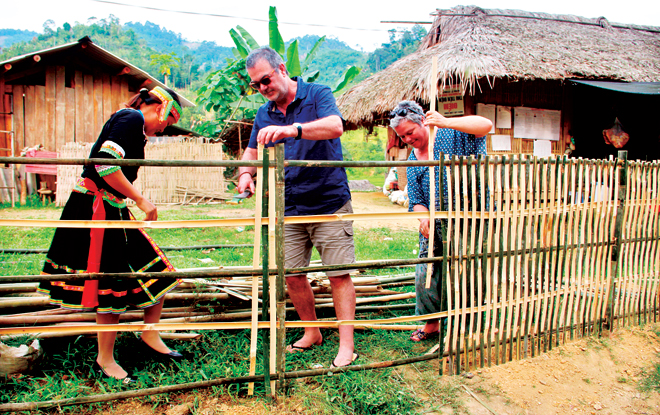 Du khách đến từ đất nước Tây Ban Nha trải nghiệm cuộc sống cùng bà con thôn Thượng Minh,