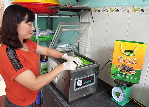 Đóng gói chè Shan tuyết thành phẩm tại Hợp tác xã sản xuất, chế biến chè Sơn Trà, thôn Hồng Ba.