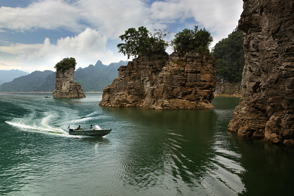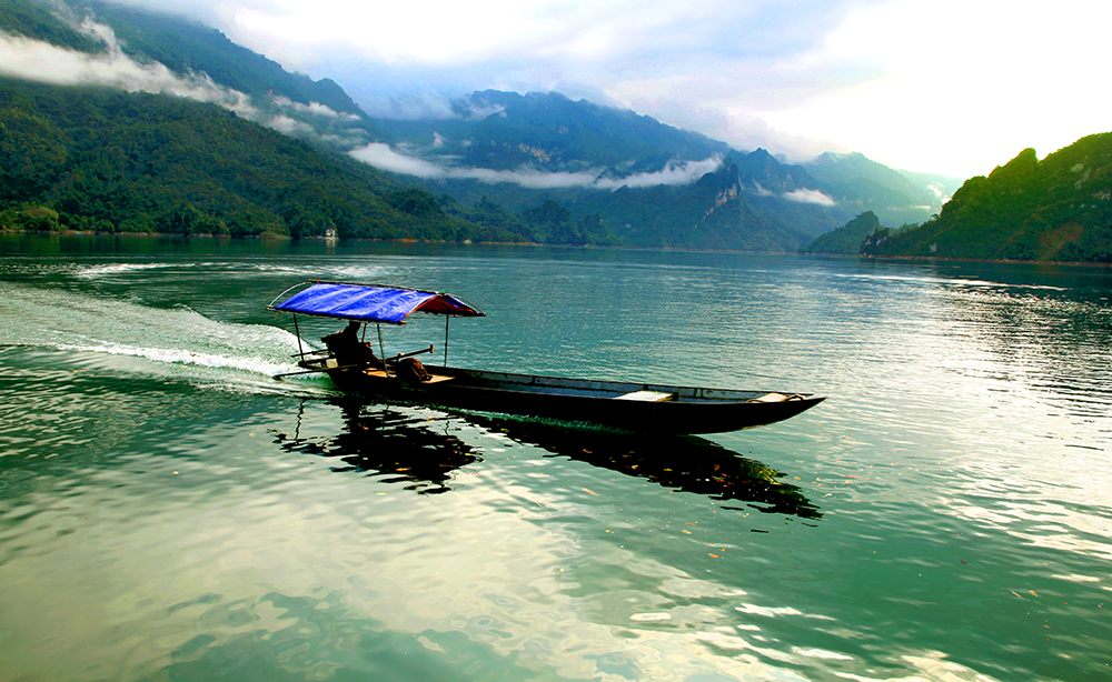 Không gì thú vị hơn được du ngoạn bằng thuyền trên hồ, tận hưởng không khí trong lành và ngắm thiên nhiên kỳ thú. Từng dãy núi trùng điệp, những câu chuyện gắn liền với những sự tích, hòa quyện với nhau, tạo cho du khách có cảm giác yên bình và mới lạ. Một núi Pắc Tạ cao ngất trầm mặc soi bóng; Cọc Vài, núi Nàng Tiên - Chú Khách, Núi Va, đền Pắc Vãng, bãi đá Phạc Mạ mờ sương… như nơi bồng lai tiên cảnh. Những thác nước phía xa nổi bật giữa màu xanh của đại ngàn khiến ta thêm yêu mến vùng đất này.