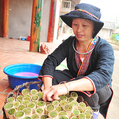 Khi những khóm tre gai trổ lá bánh tẻ vào tháng 4, tháng 5 dương lịch cũng là dịp làm cơm lam của người dân tộc Dao. Để làm nên những lóng cơm lam dẻo thơm là cả một sự kỳ công, khéo léo và những giọt mồ hôi vất vả của người phụ nữ Dao.