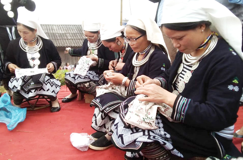 Câu lạc bộ Thêu trang phục Dao Tiền thôn Khau Tràng, xã Hồng Thái, Na Hang hoạt động sôi nổi, hiệu quả.