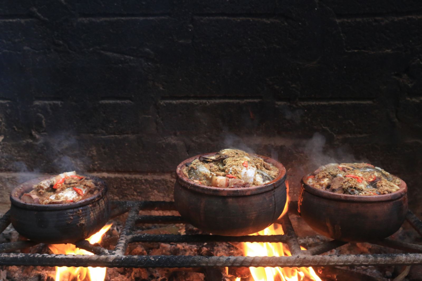 Cá được kho liên tục 16 tiếng trên bếp củi.