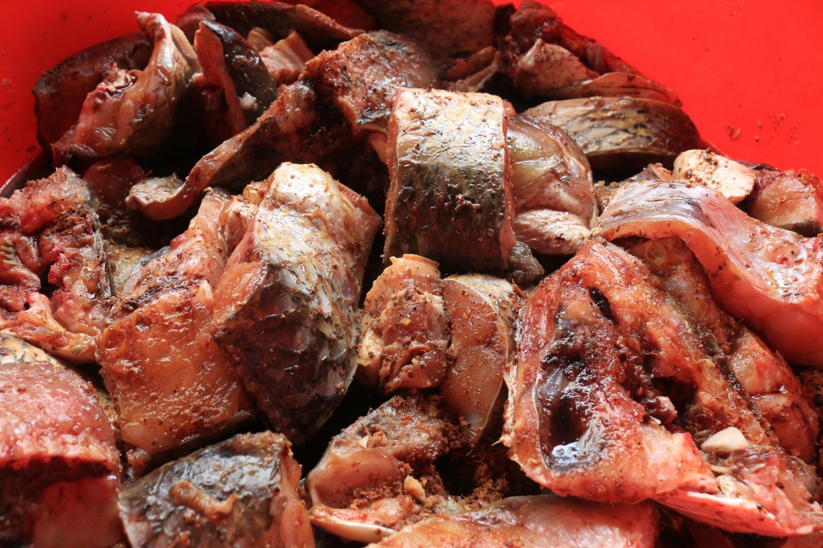 Anh Mạnh chia sẻ: Khâu chuẩn bị, sơ chế rất quan trọng, quyết định một phần chất lượng sản phẩm. Vì vậy việc ướp cá thường được diễn ra vào buổi sáng khi vừa nhập cá về. Cá được sơ chế sạch sẽ, dùng muối, dấm để khử mùi tanh và cắt khúc, ướp với muối, hạt nêm, mỳ chính, chanh, ớt, tiêu, hành, tỏi, riềng, nước cốt xương hầm, tai chua… trong 1-2 tiếng.