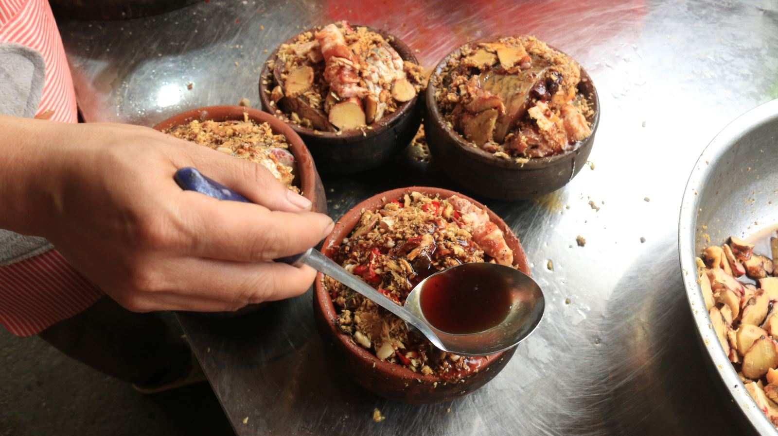 Sau khi tẩm ướp, cá được xếp vào niêu đất hoặc nồi gang, kho liên tục trên bếp củi 16 tiếng.