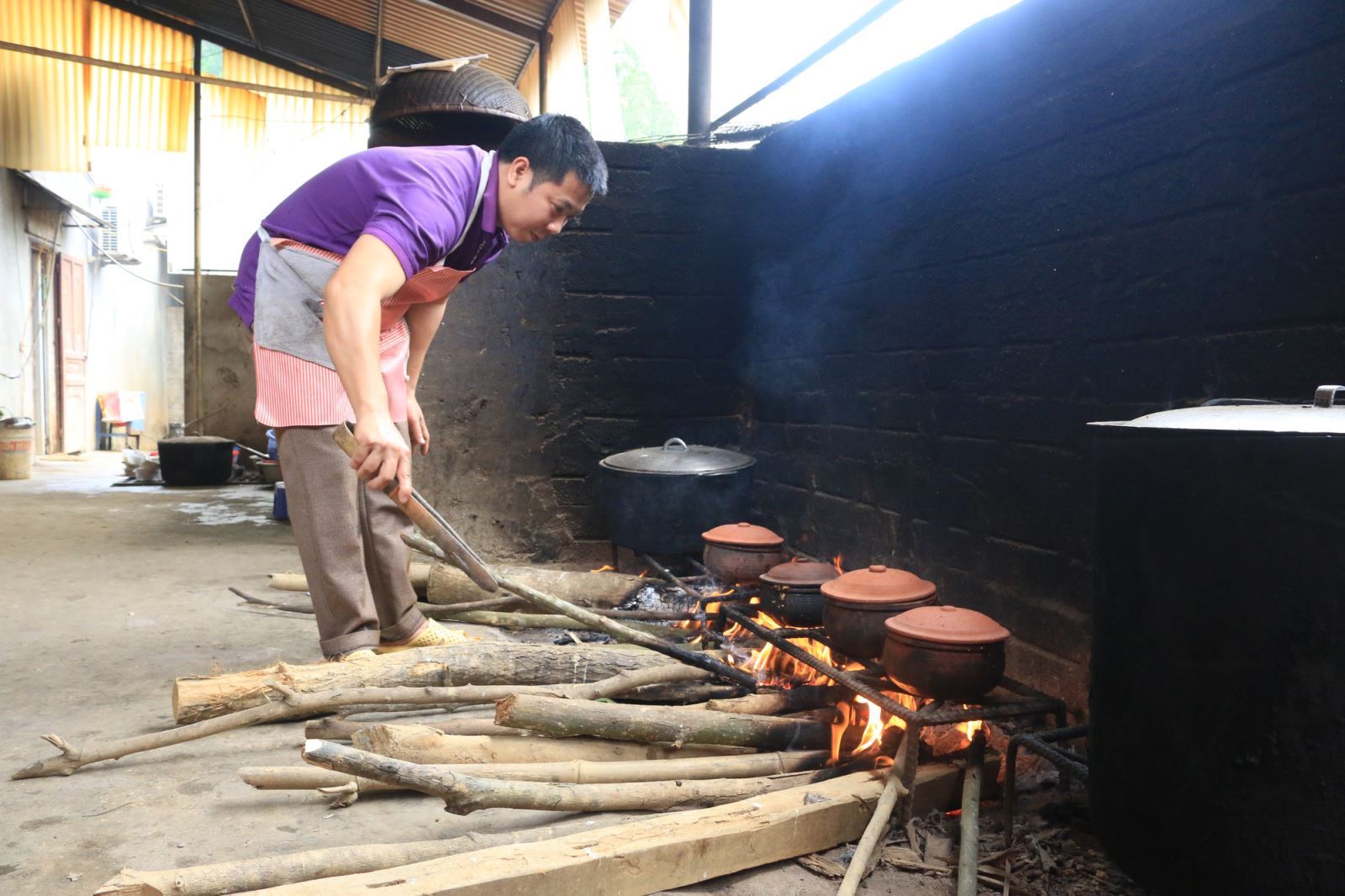 Cũng theo chủ cơ sở chia sẻ, việc điều tiết lửa cũng vô cùng quan trọng. Củi lúc nào cũng đỏ lửa, không cháy quá to, giữ cho nồi cá luôn sôi lăn tăn và không bị trào nước ra ngoài. Ngay cả việc thêm nước, gia đình cũng dùng nước nóng để cân bằng nhiệt độ trong và ngoài nồi, giúp cá chín đều.