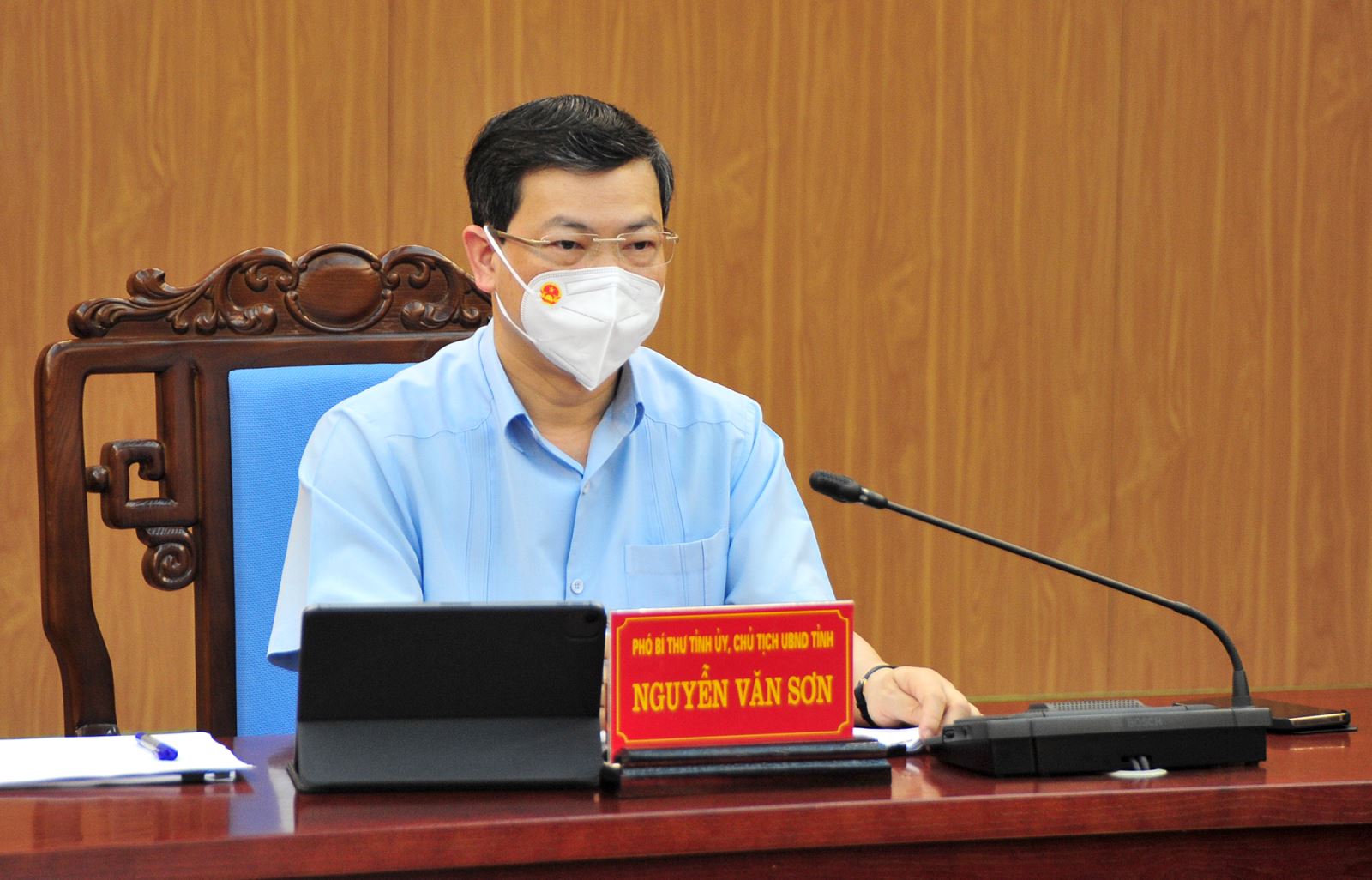 Chủ tịch UBND tỉnh Nguyễn Văn Sơn chủ trì hội nghị tại điểm cầu Tuyên Quang. Ảnh: Việt Hòa