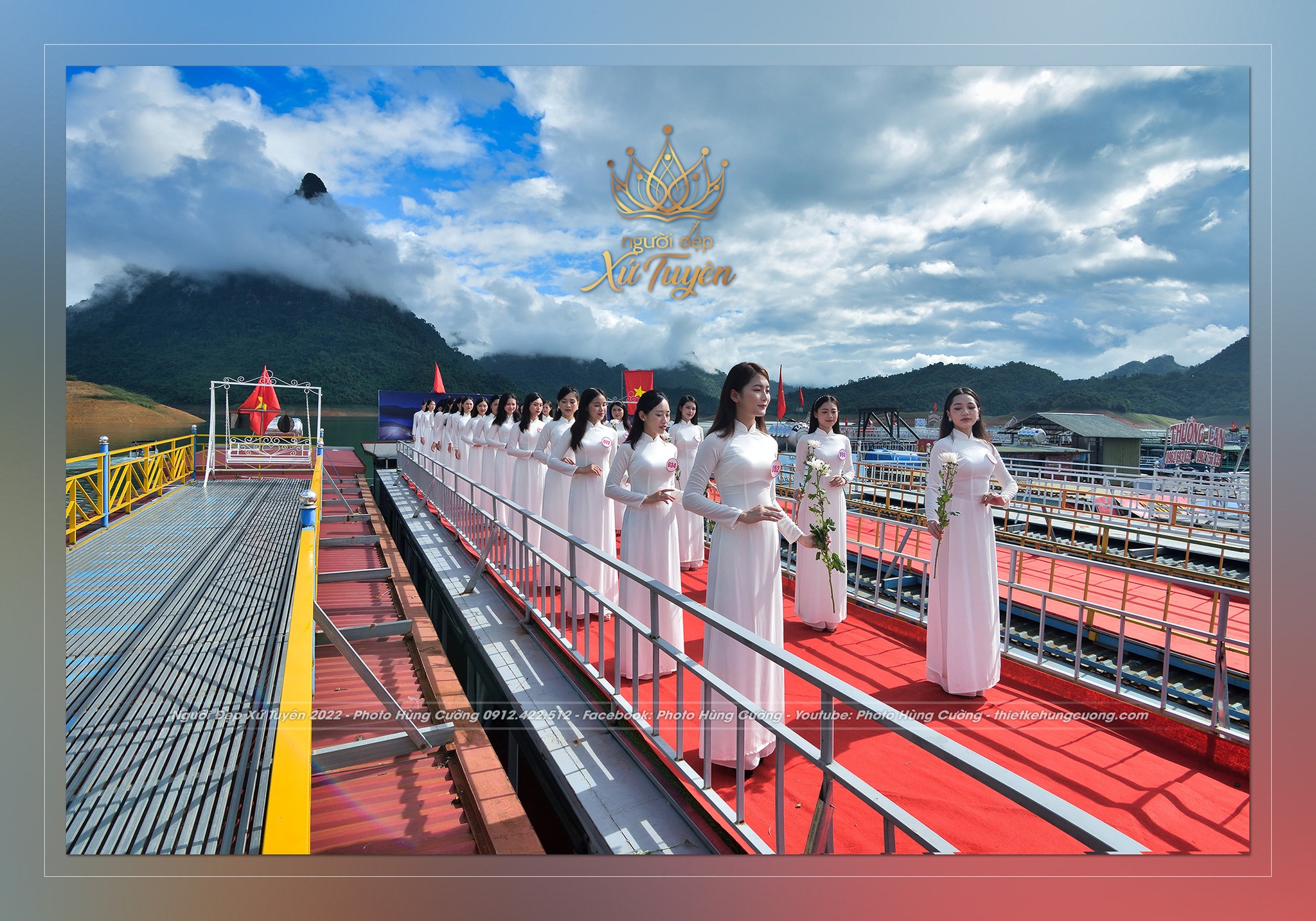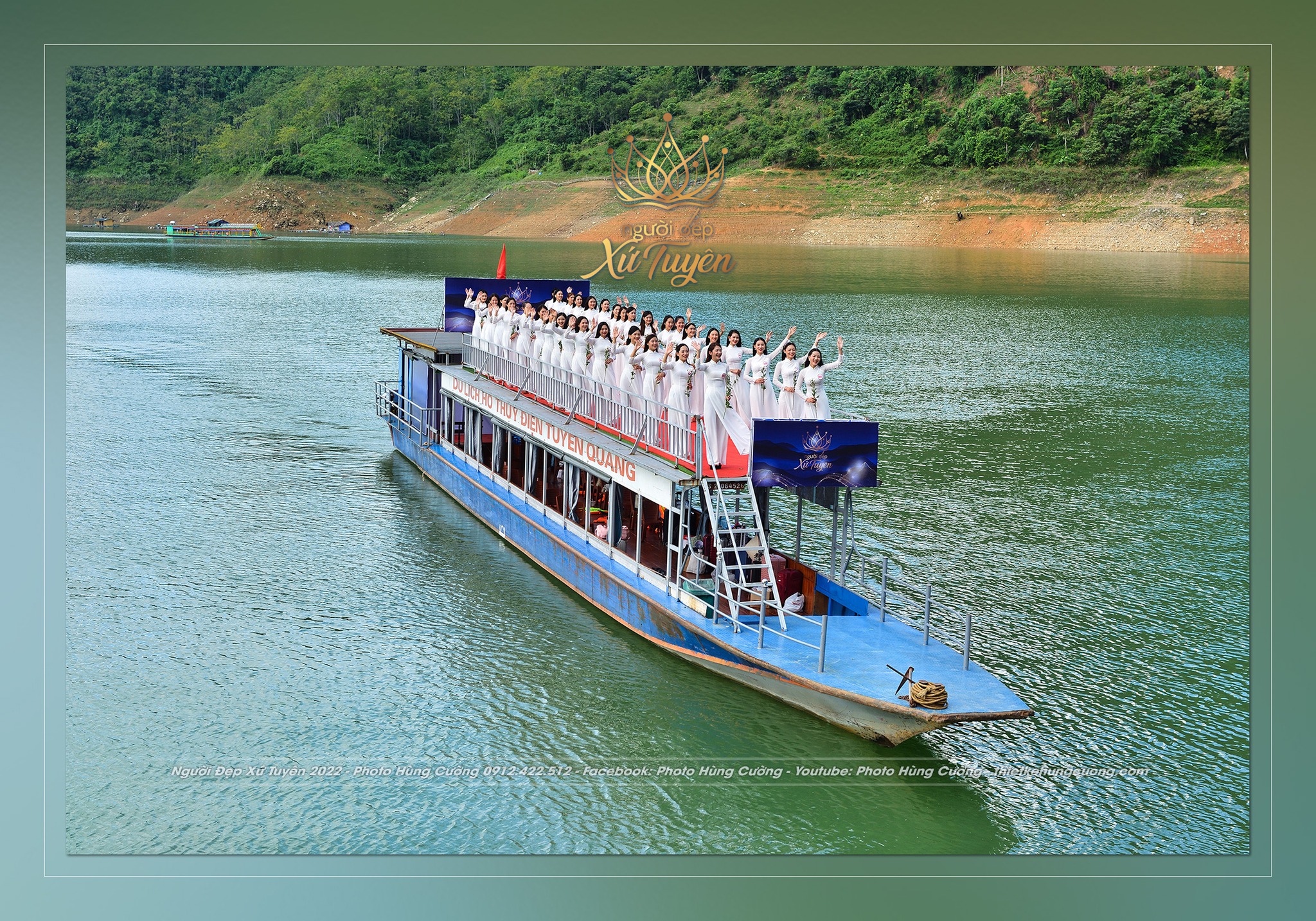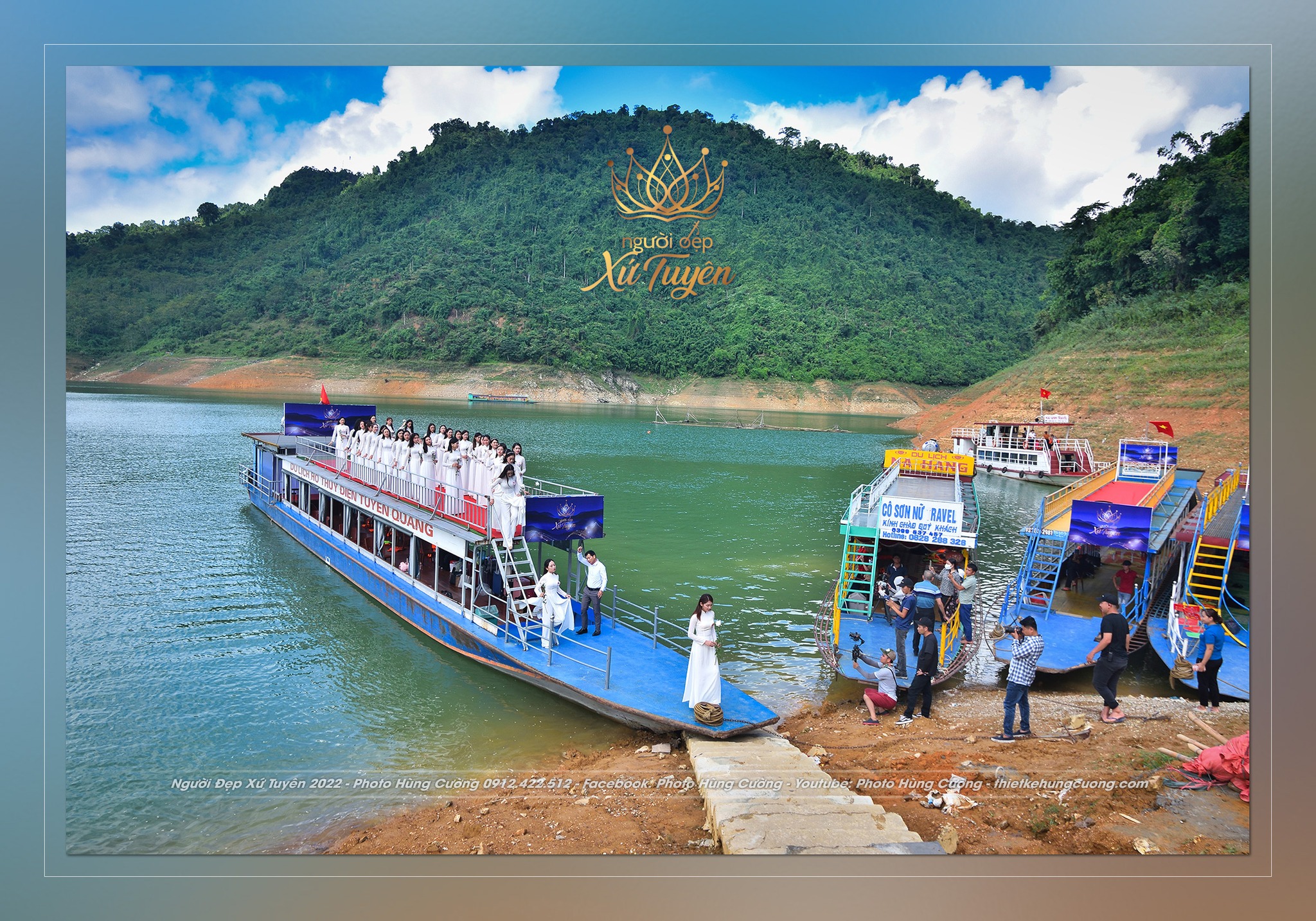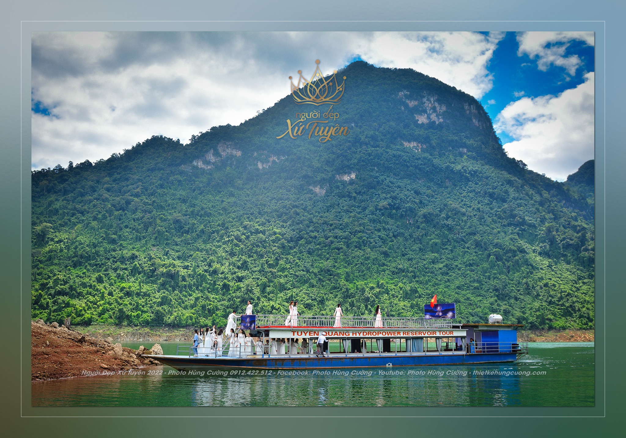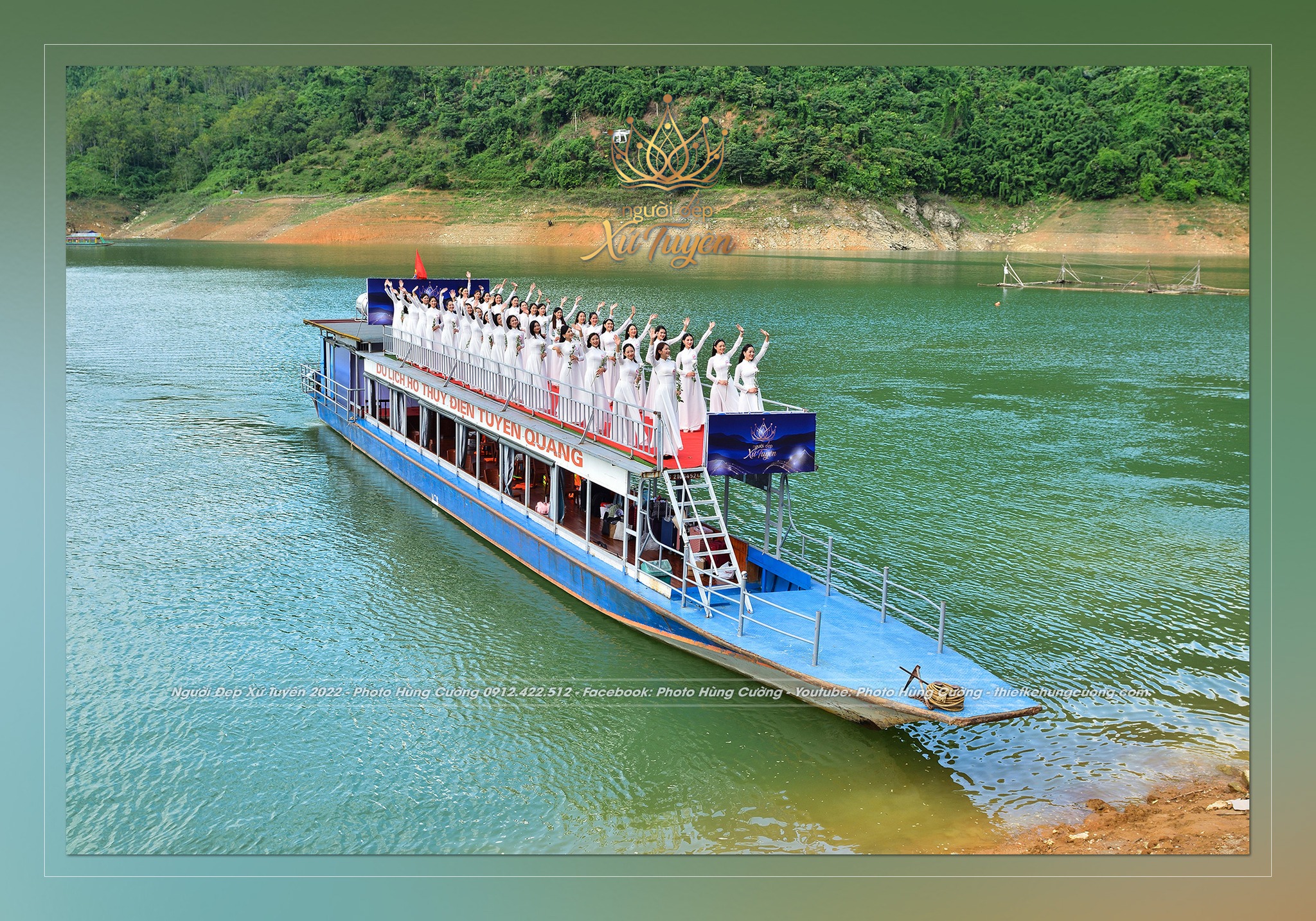 Người đẹp xứ Tuyên thăm quan hồ sinh thái Nà Hang Lâm Bình. Photo: Hùng Cường