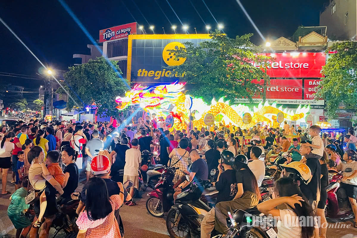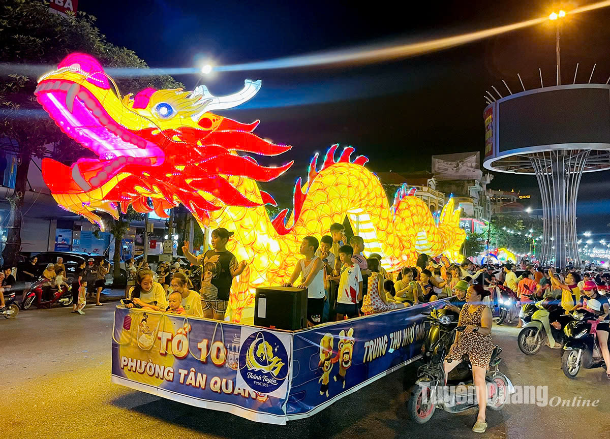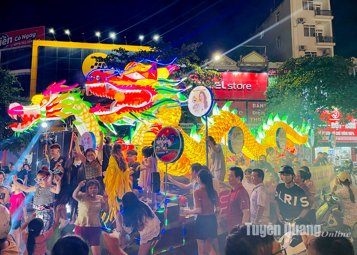 Đèn Trung thu khổng lồ bắt đầu xuất hiện trên đường phố Tuyên Quang. Nguồn: Báo Tuyên Quang 2024