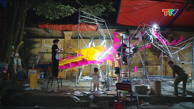 Xem người dân làm đèn Trung thu khổng lồ - Theo:...