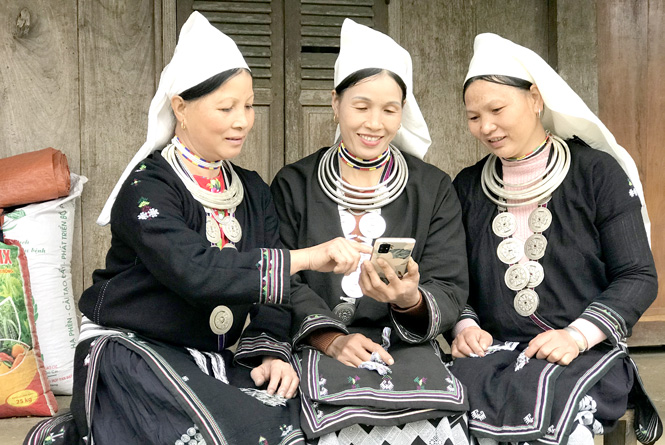 Phụ nữ Dao Tiền, thôn Pắc Khoang, xã Hồng Thái (Na Hang) theo dõi