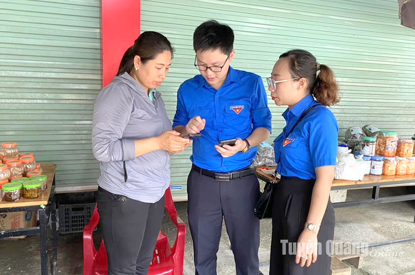 Lực lượng đoàn viên, thanh niên tuyên truyền người dân tiếp cận trên Internet.