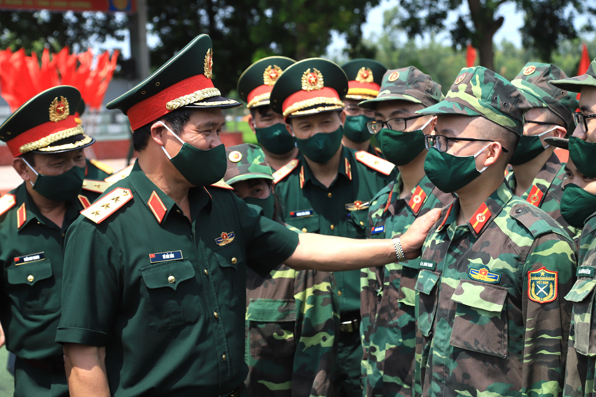 Thượng tướng Vũ Hải Sản, Ủy viên Trung ương Đảng, Thứ trưởng Bộ Quốc phòng động viên cán bộ, chiến sĩ bệnh viện dã chiến lên đường làm nhiệm vụ _Nguồn: vietnamnet.vn