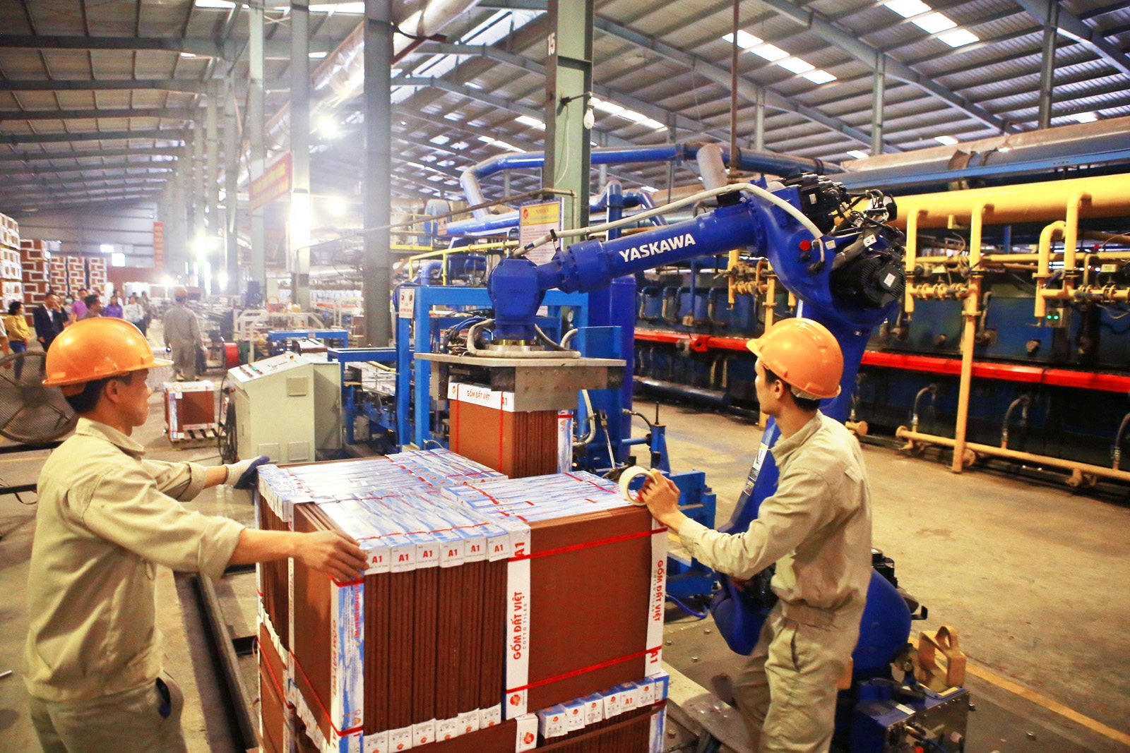 Gốm đất Việt - một điểm sáng trong phát triển đảng viên ở doanh nghiệp tư nhân (Trong ảnh: Sản xuất gạch ngói cao cấp tại Công ty cổ phần Gốm đất Việt)_Ảnh: TTXVN