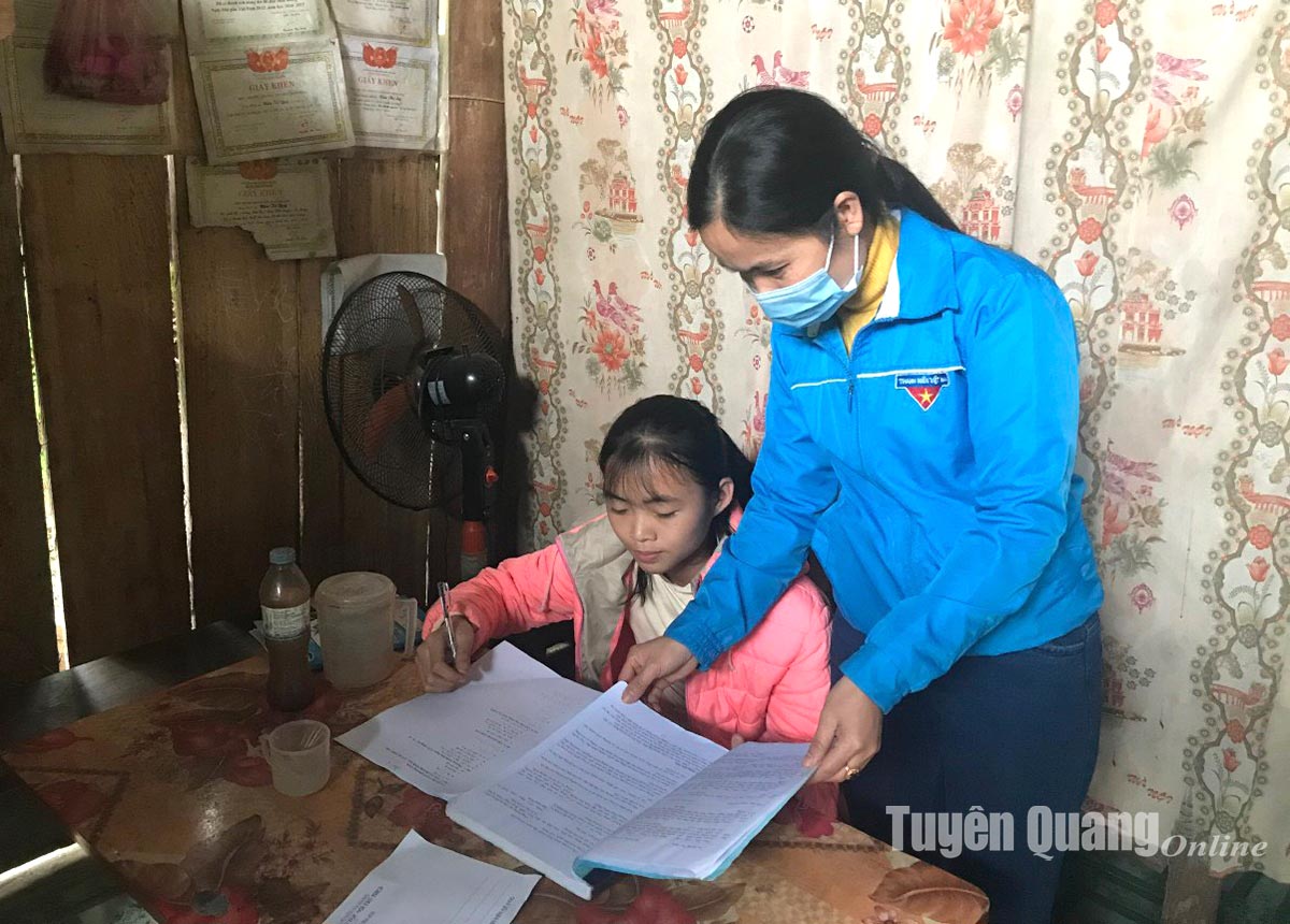 Cô giáo Đặng Thị Hà, Chi ủy viên chi bộ, Bí thư Đoàn trường PTDT Nội trú THCS và THPT huyện Na Hang đến tận nhà để hướng dẫn ôn bài cho học sinh có hoàn cảnh khó khăn.