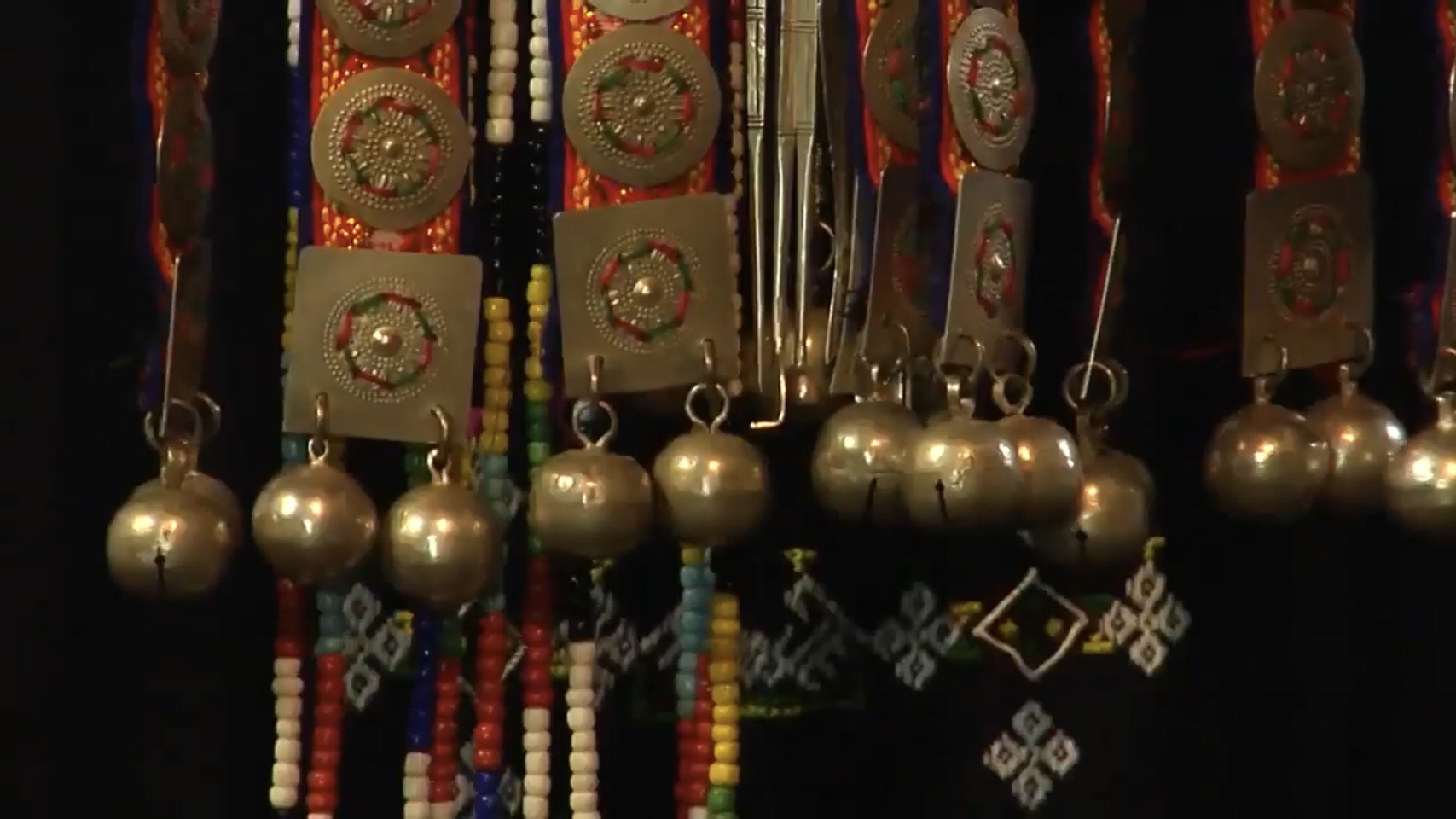 Đi kèm với trang phục là khăn đội đầu và dây xà tích bằng bạc, trên dây xà tích có treo nhiều vật dụng được làm bằng bạc rất tinh xảo như; hộp đựng vôi để ăn trầu, hình con cá lớn, cá nhỏ (tượng trưng cho cuộc sống sung túc), những quả chuông bằng bạc…gia đình giàu có thì dây xà tích lớn hơn và nhiều vật dụng hơn.