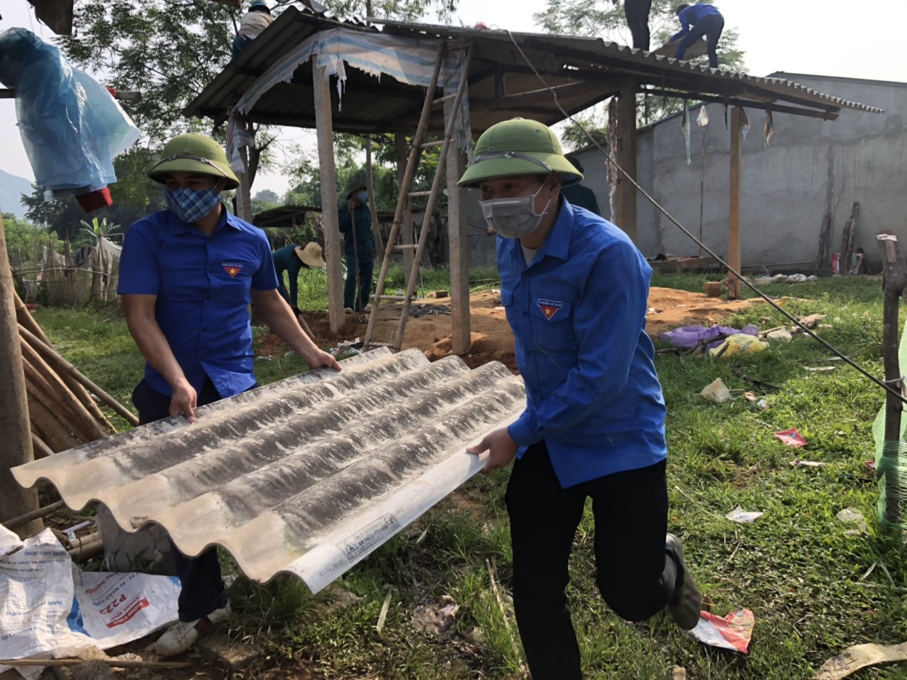 Anh Biển cùng đoàn viên giúp đỡ hộ gia đình tháo dỡ nhà cũ