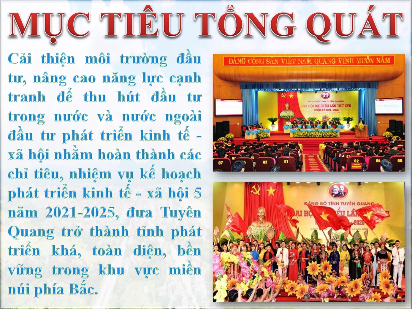 Việc triển khai xây dựng và thực hiện Đề án thu hút đầu tư trên địa bàn tỉnh Tuyên Quang giai đoạn 2021 - 2025 nhằm huy động sức mạnh của cả hệ thống chính trị quyết tâm cải thiện môi trường đầu tư để xây dựng, tạo lập địa chỉ hấp dẫn, tin cậy, là điểm đến an toàn cho các nhà đầu tư trong nước và nước ngoài.
